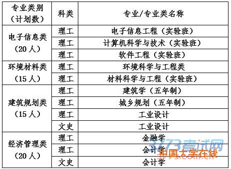 1、招生专业类别:电子信息类、建筑规划类、经济管理类和环境材料类。