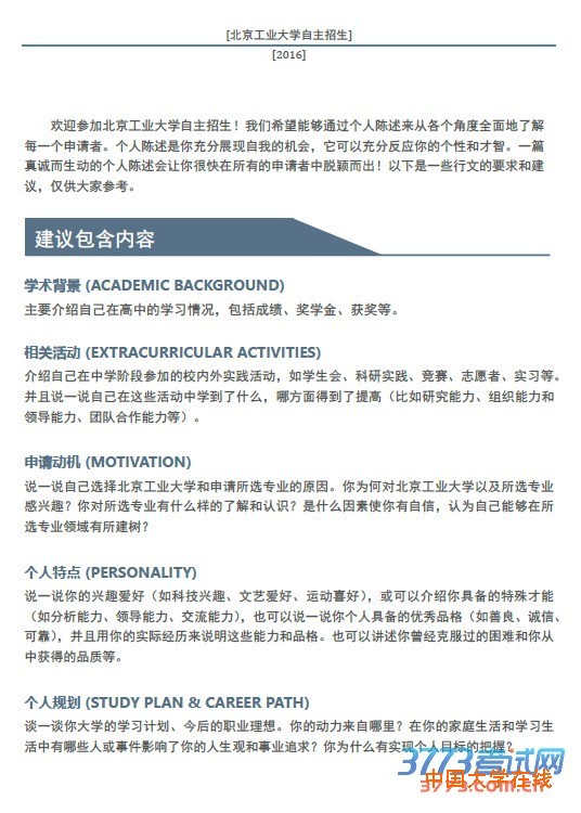 北京工业大学2016年自主招生个人陈述撰写建议 点击查看