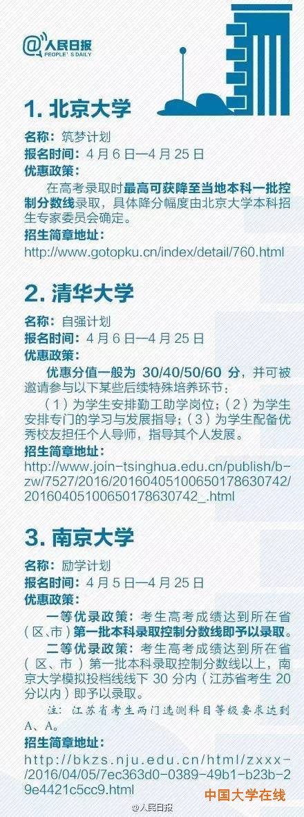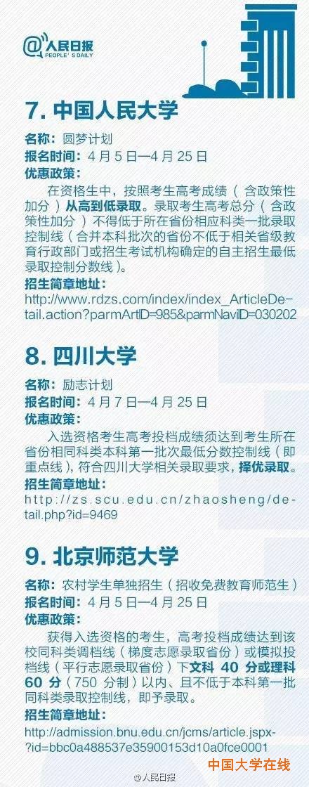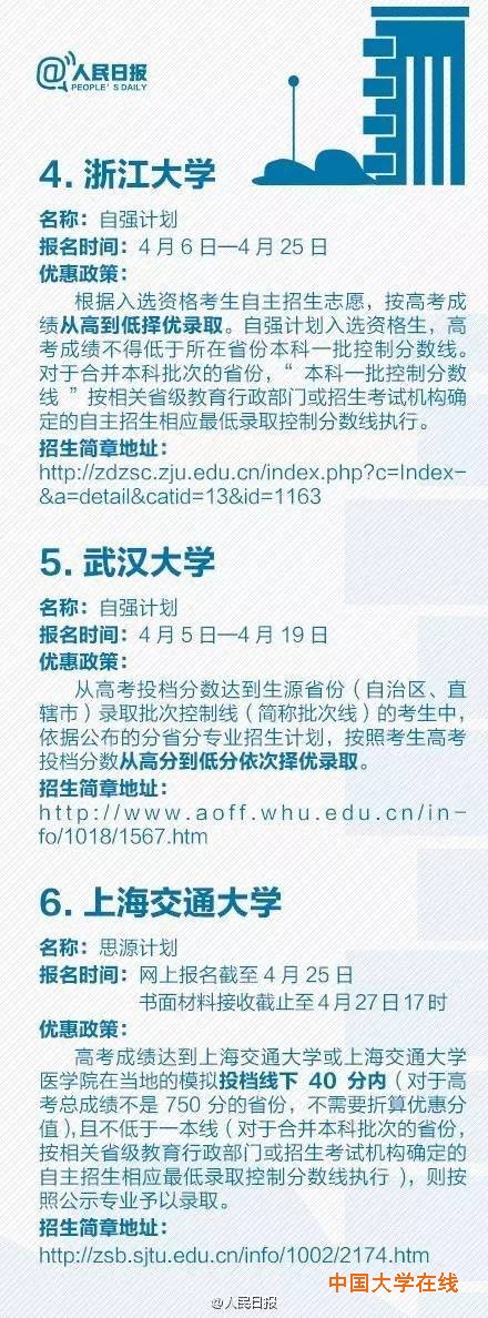 ③浙大、人大:入选资格考生达所在省份一本线,按高考成绩从高到低录取…