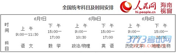 记者了解到,今年海南省实行“3+3”的高考科目设置,报考文史类和艺术文类的考生要考语文、数学(文)、英语(含听力)、政治、历史、地理;报考理工类和体育理类的考生要考语文、数学(理)、英语(含听力)、物理、化学、生物。