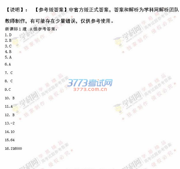 2016年新课标1数学理科高考试题及答案(图片) 适用地区:河南、河北、山西、江西、湖北、湖南、广东、安徽、福建