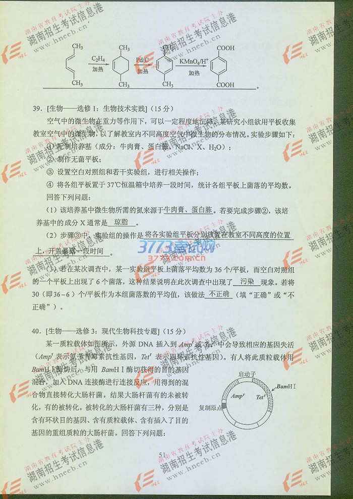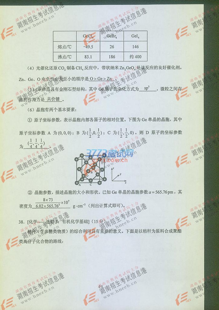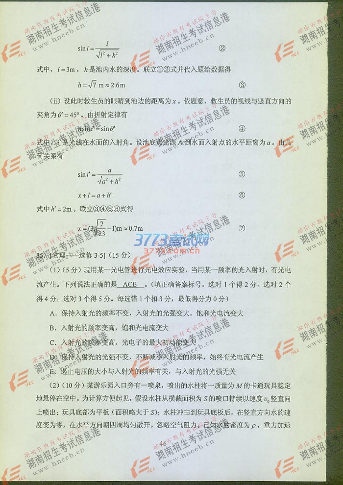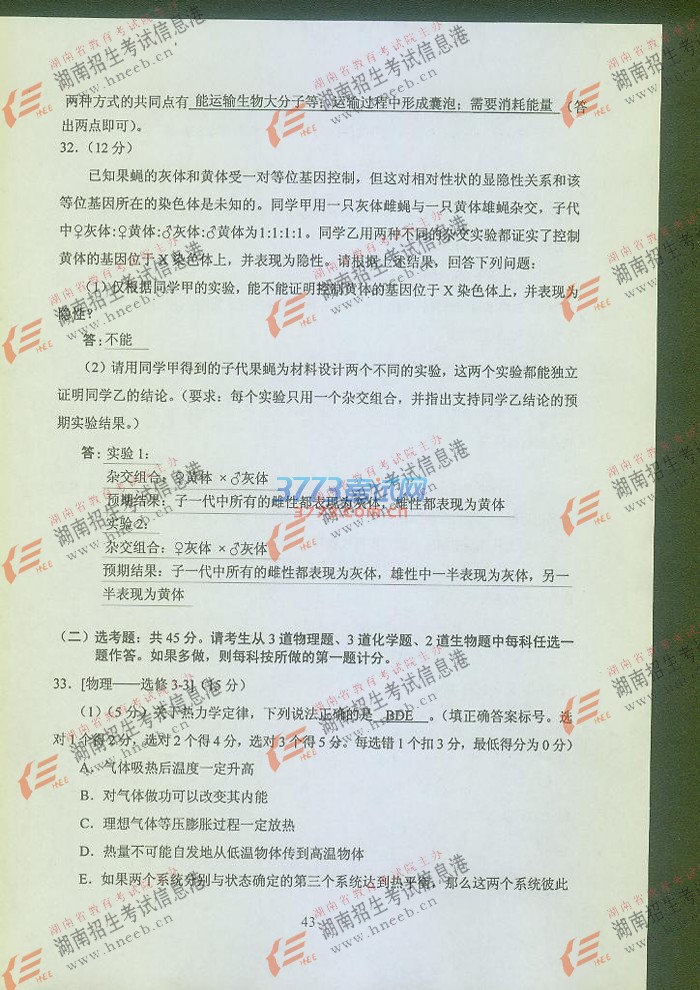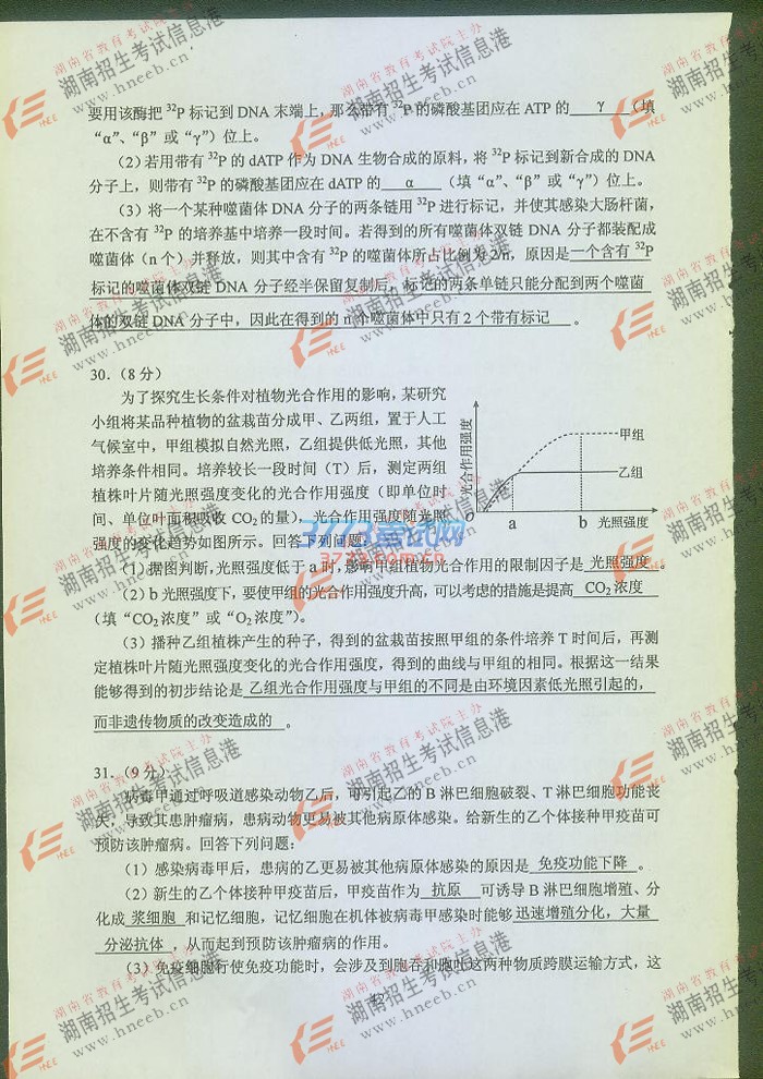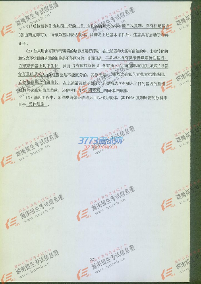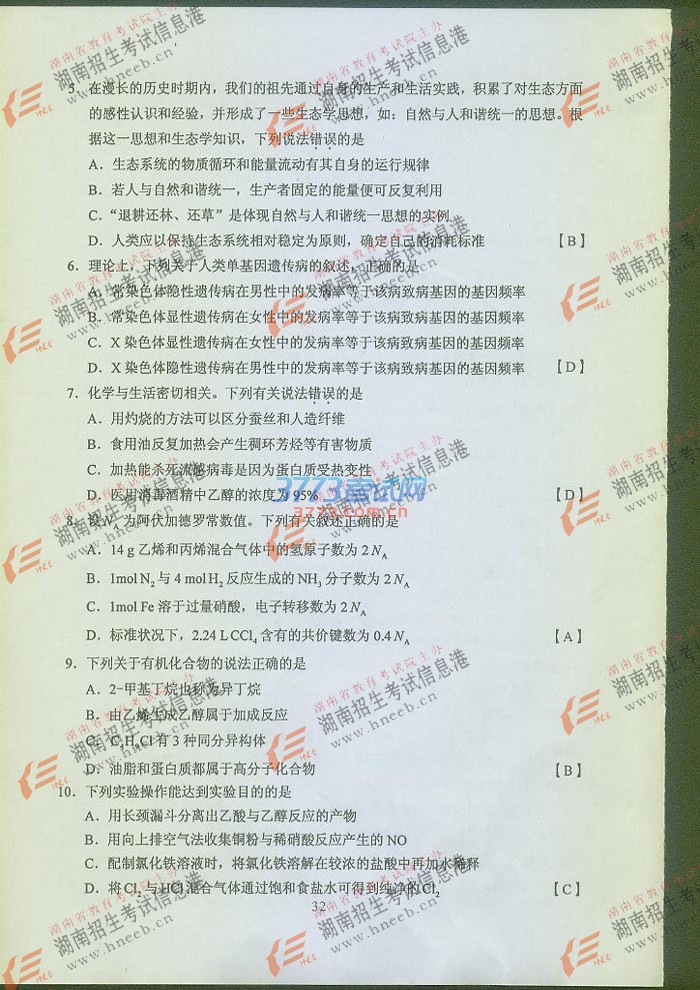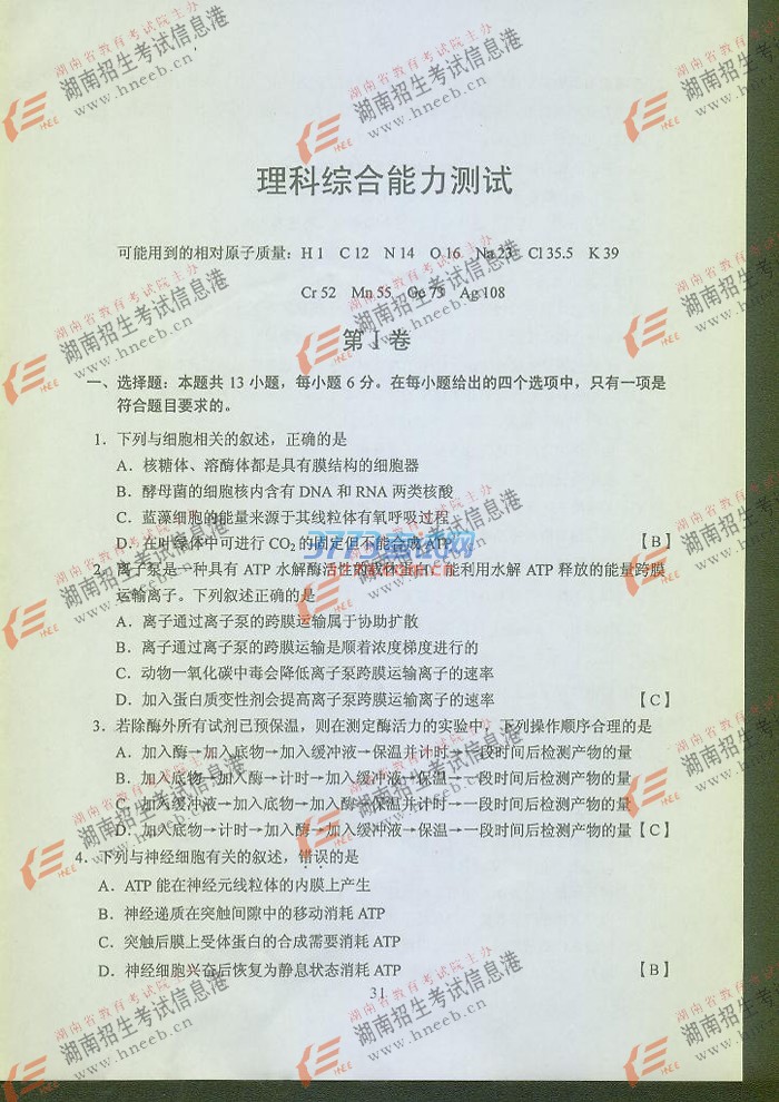 2016年全国普通高校招生统考试题参考答案(理科综合) 适用地区:河南、河北、山西、江西、湖北、湖南、广东、安徽、福建、山东