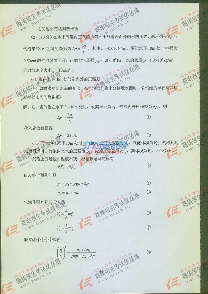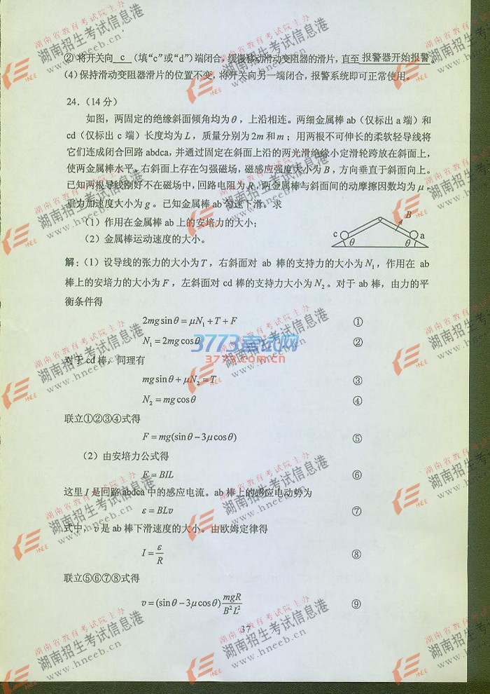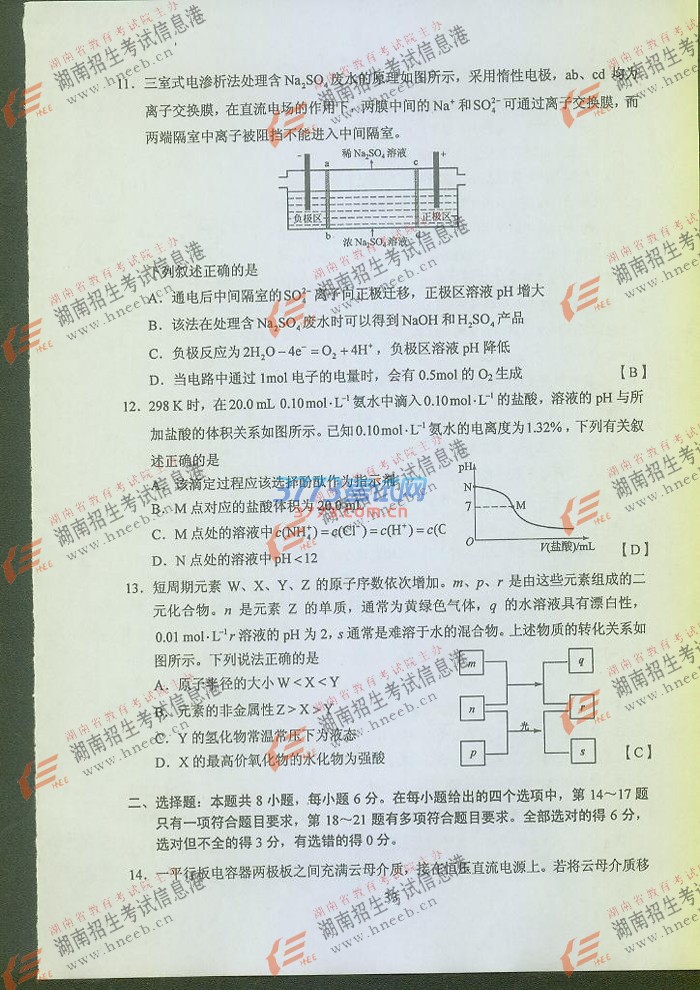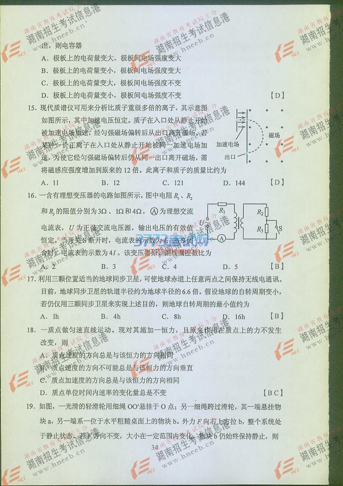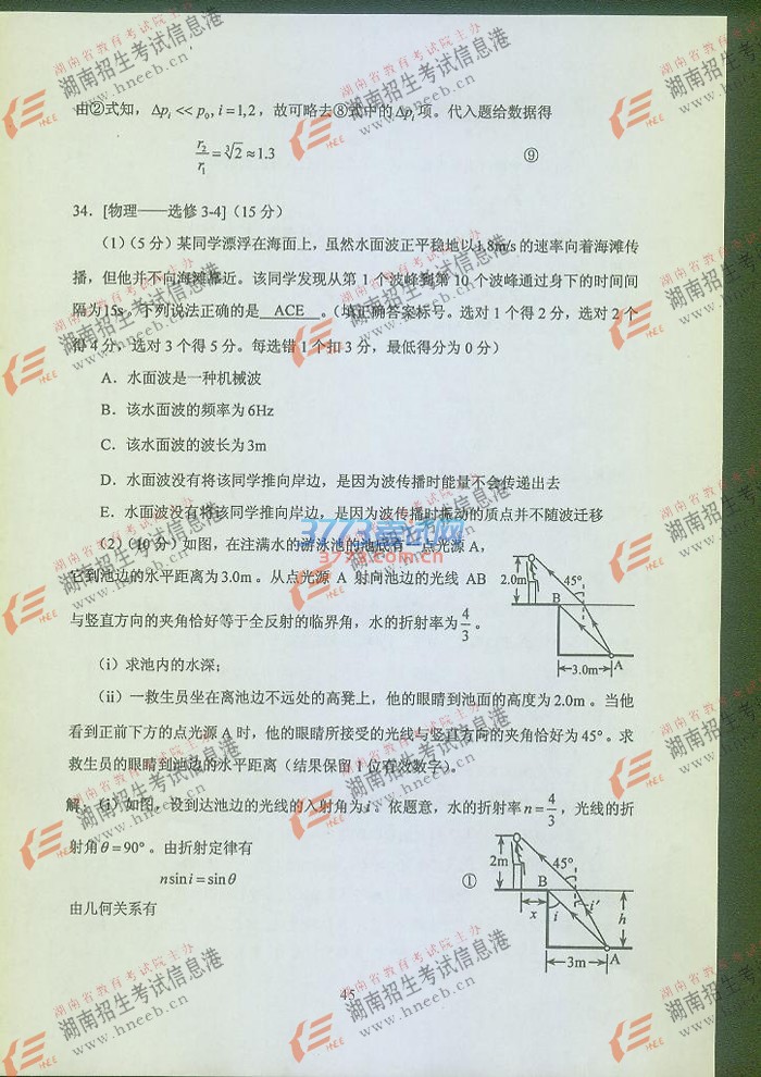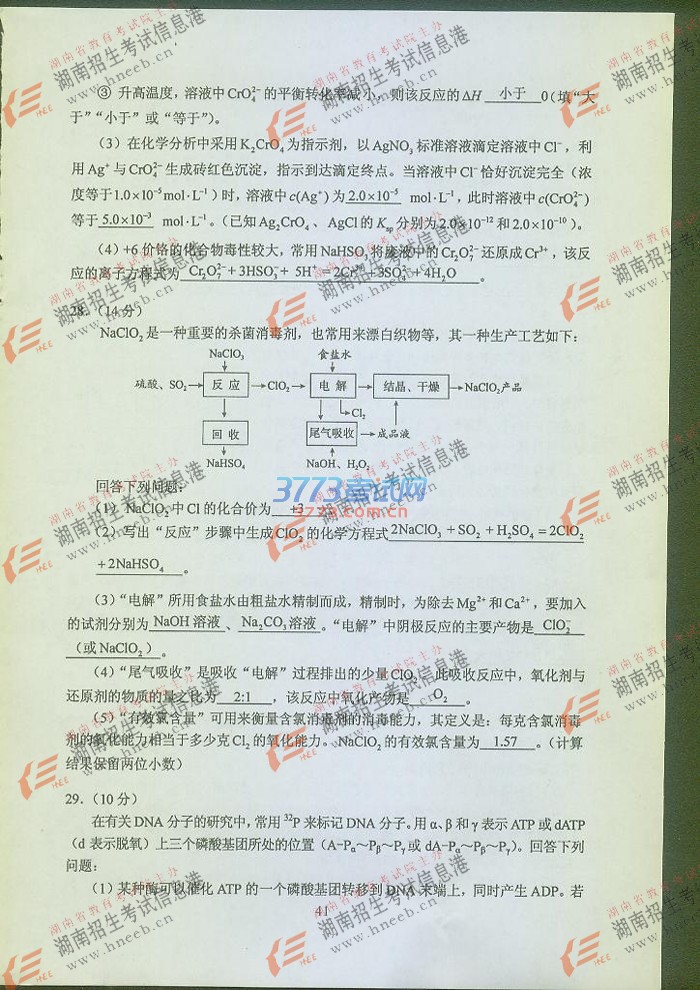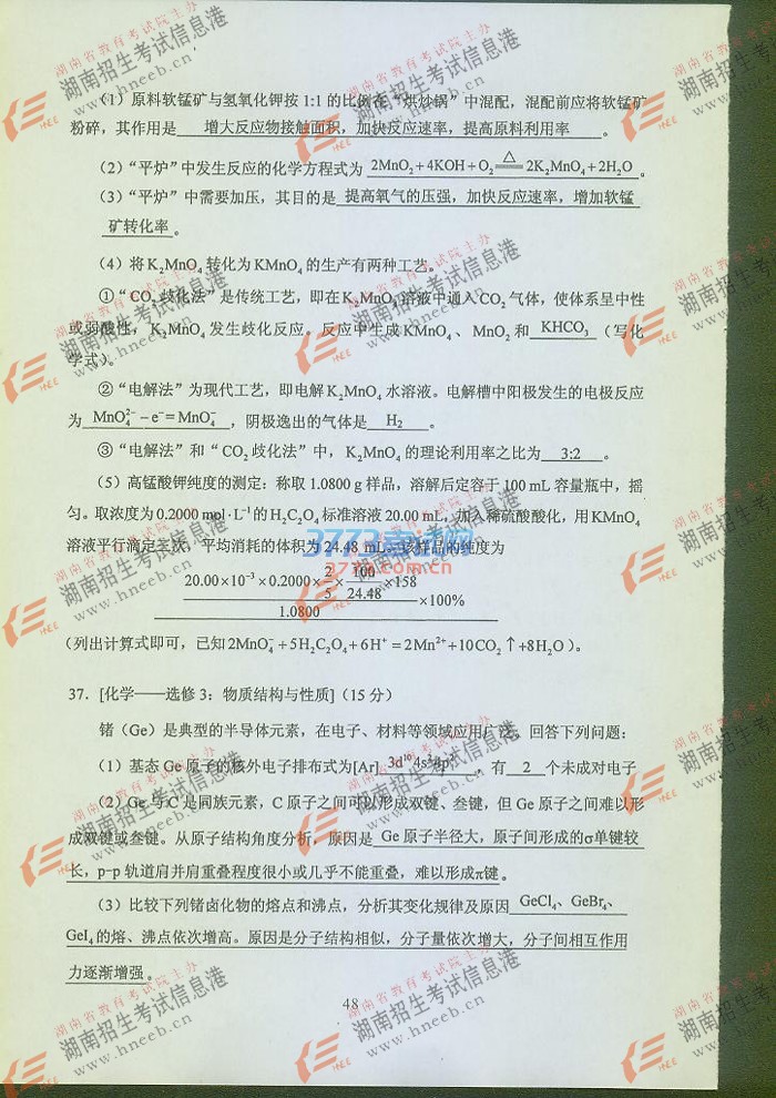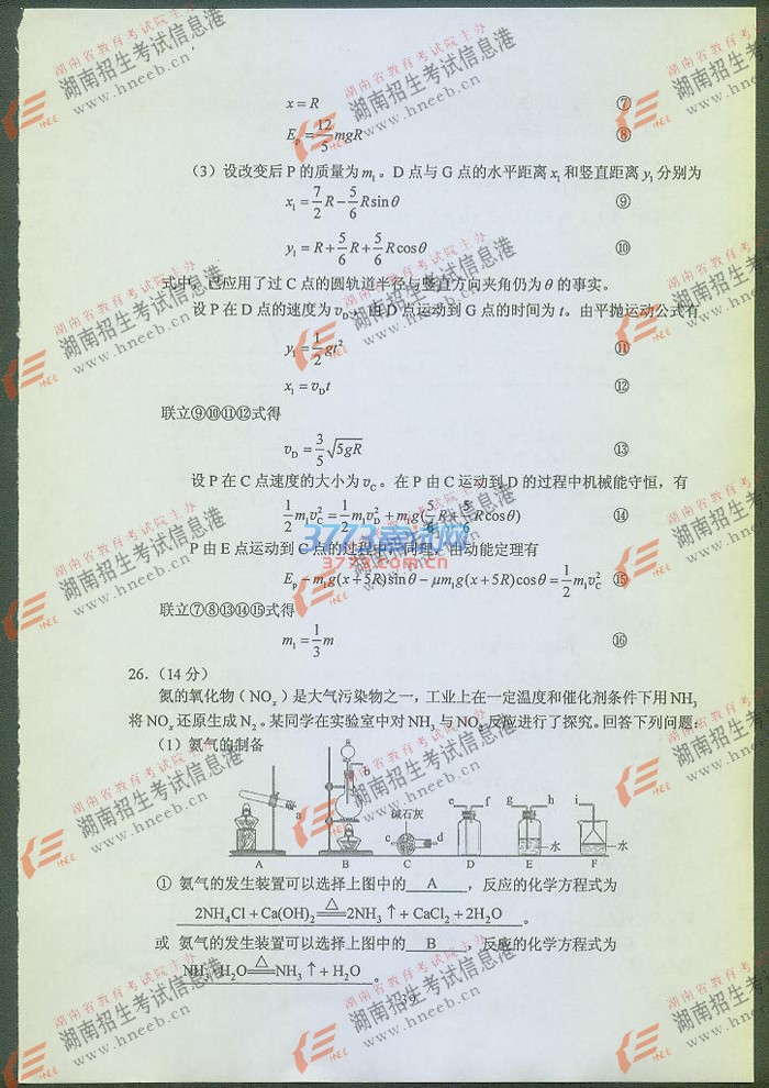 2016年全国普通高校招生统考试题参考答案(理科综合) 适用地区:河南、河北、山西、江西、湖北、湖南、广东、安徽、福建、山东