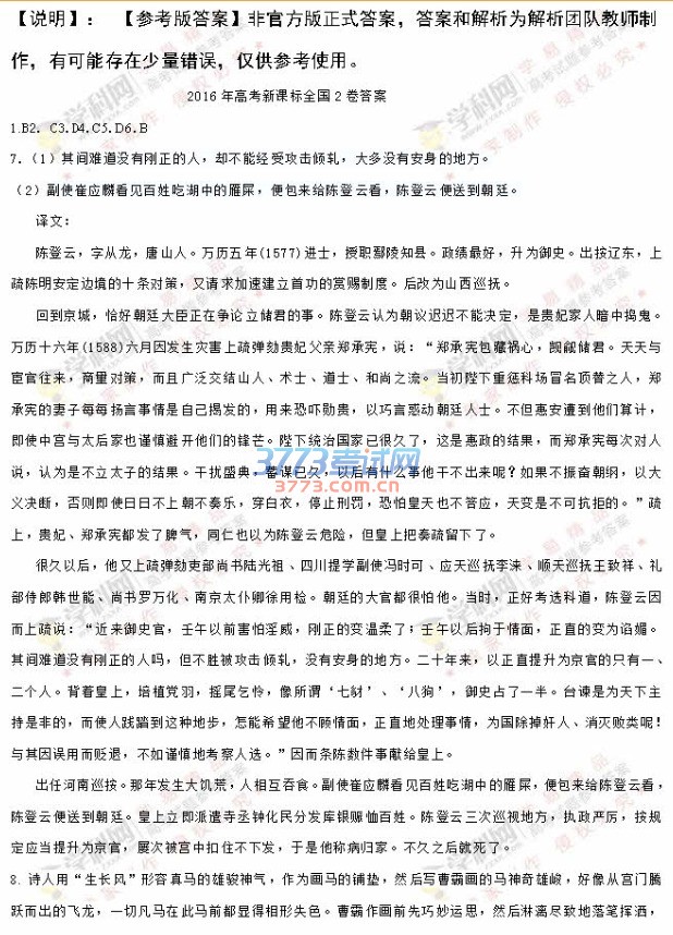 2016年新课标2语文高考试题及答案(图片)