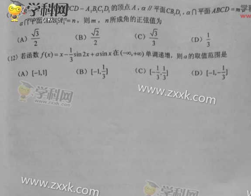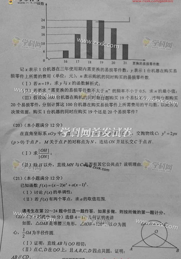 2016甘肃高考数学文科试题及答案(试题发布)