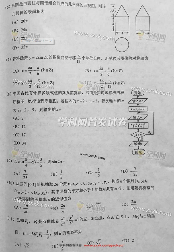 2016年新课标2数学理科高考试题及答案(图片)2016全国2卷数学理科试题及答案部分
