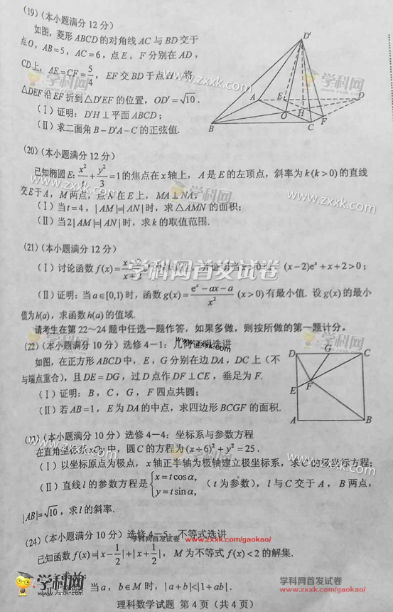2016甘肃高考数学理科试题及答案(部分答案)