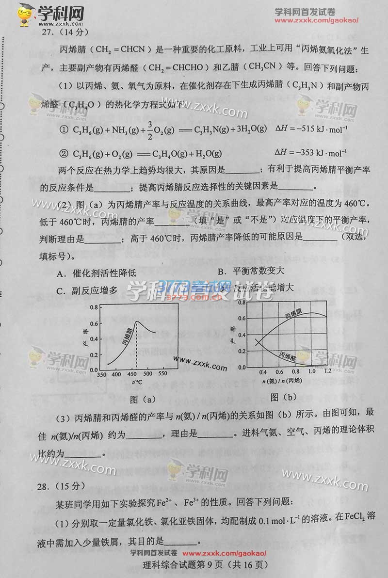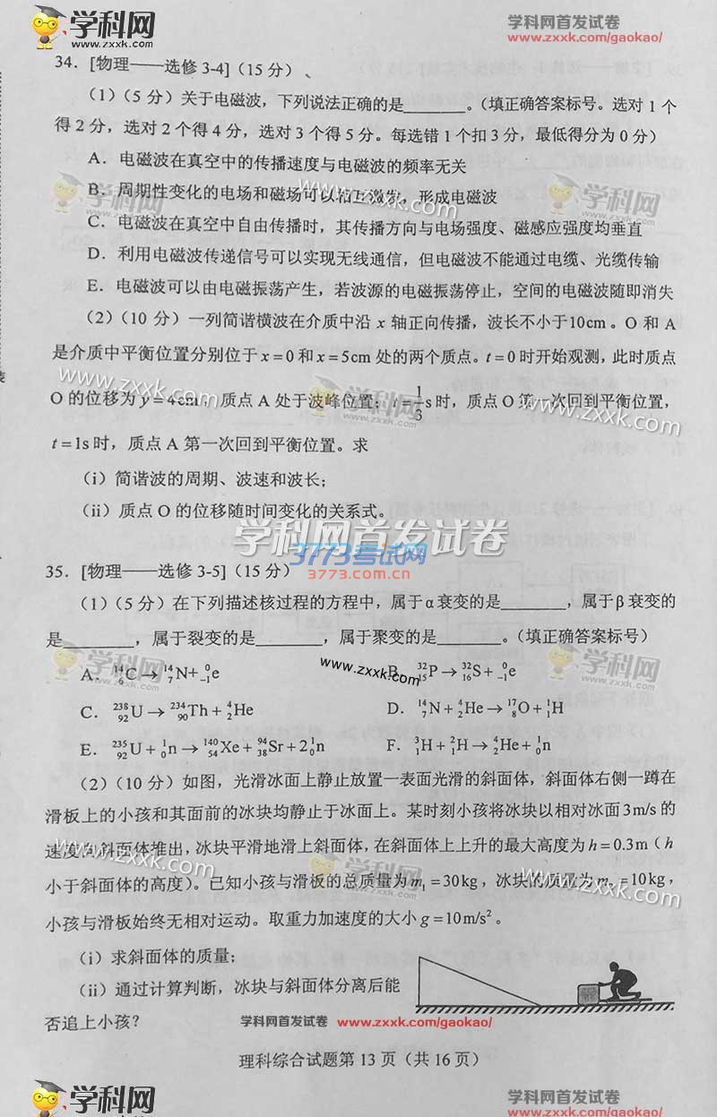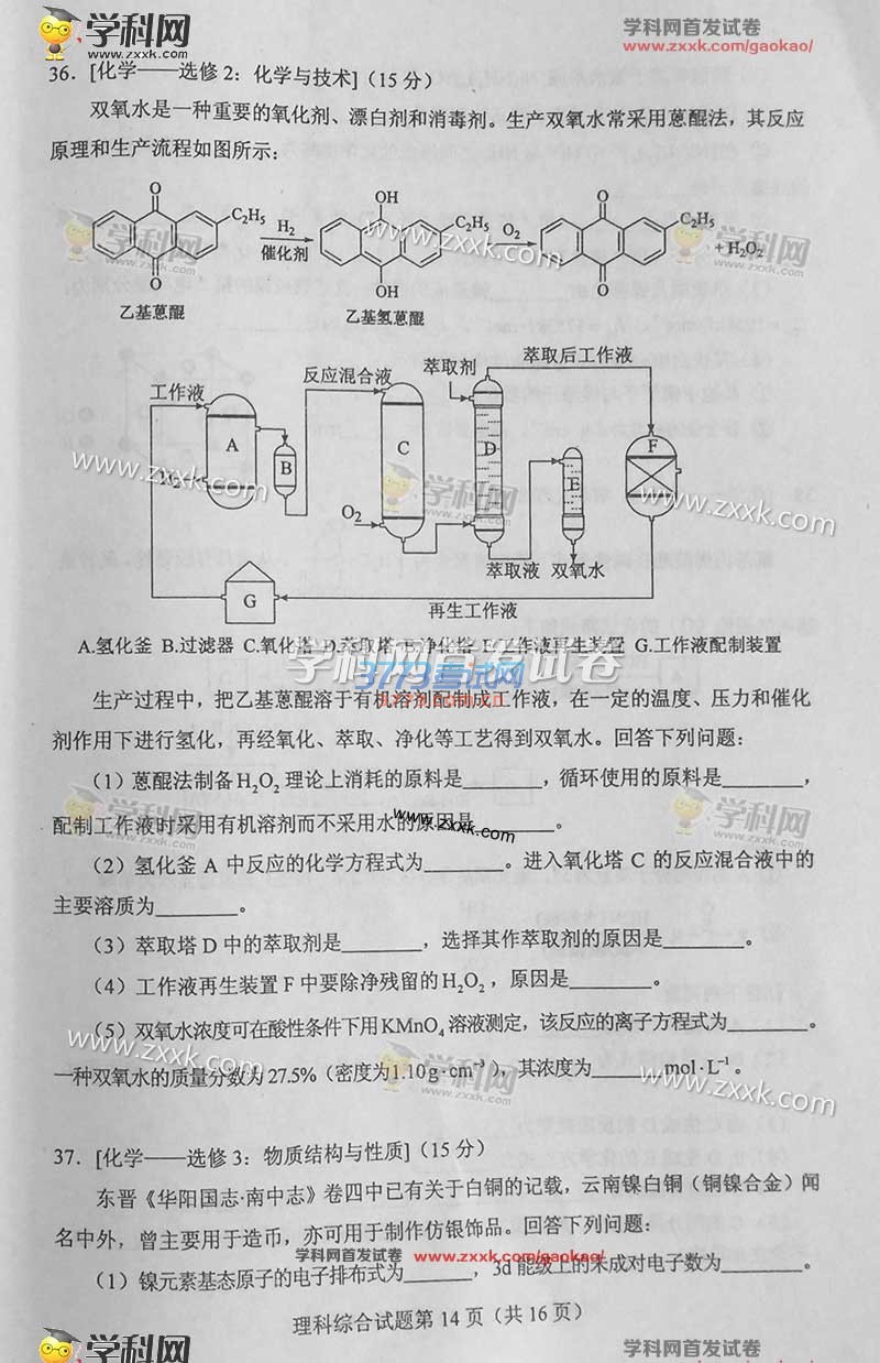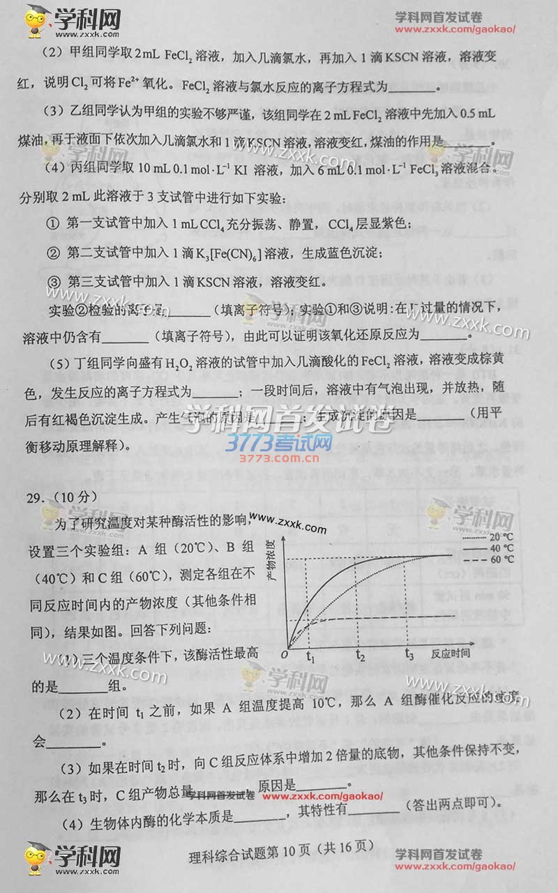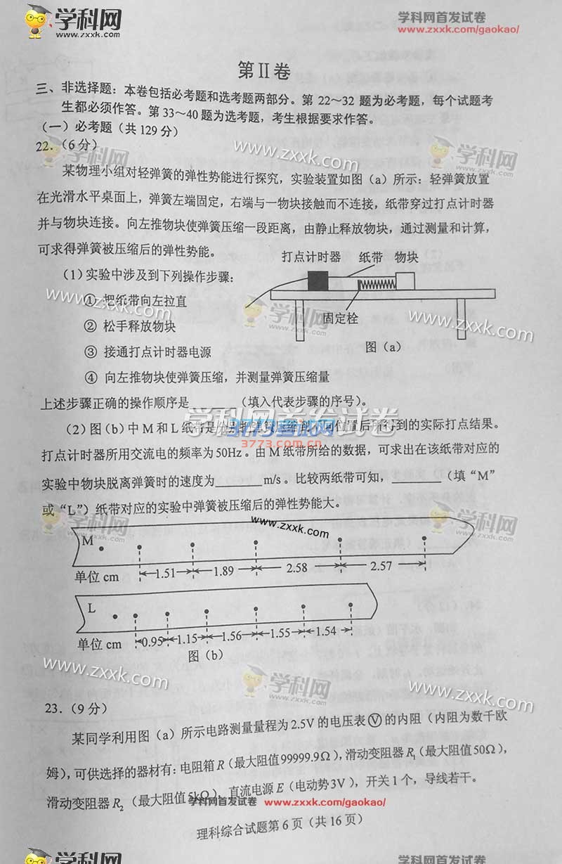 2016甘肃高考理综试题及答案(试题发布)