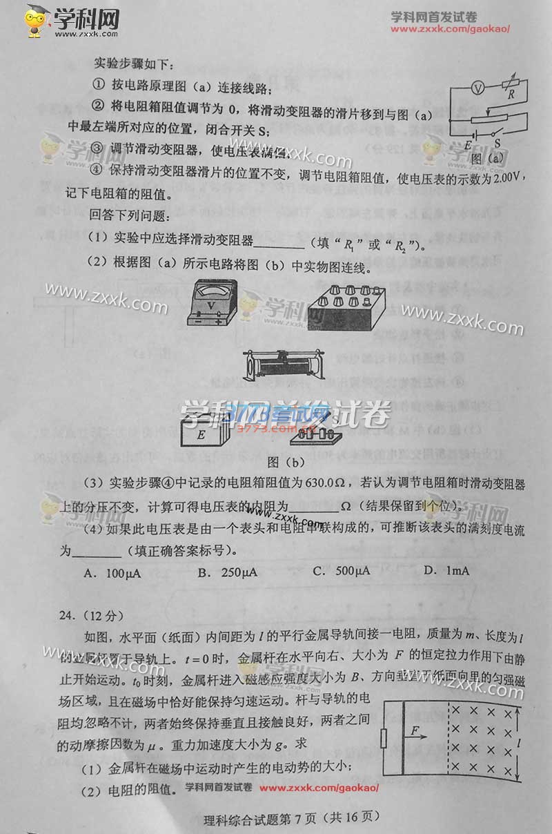 2016年新课标2理科综合高考试题及答案(图片)