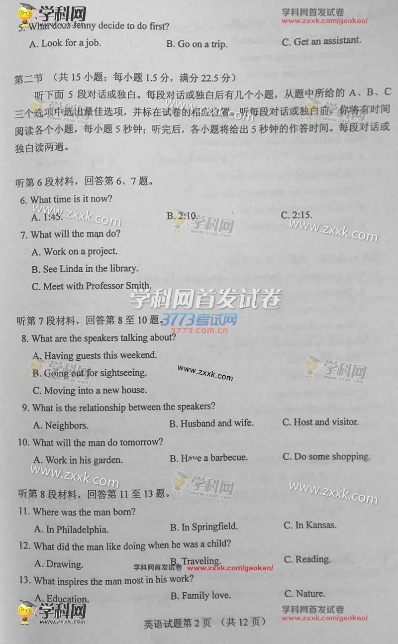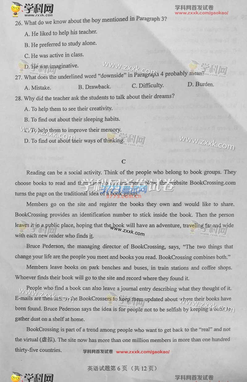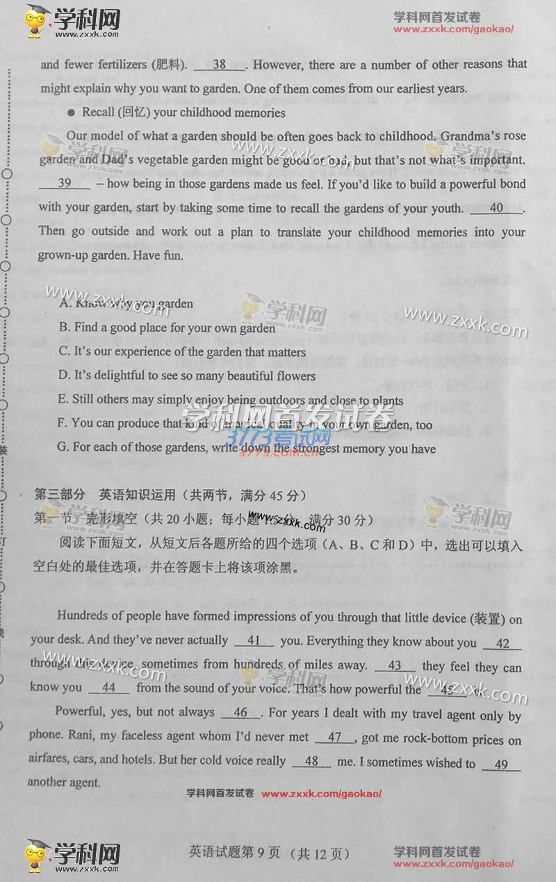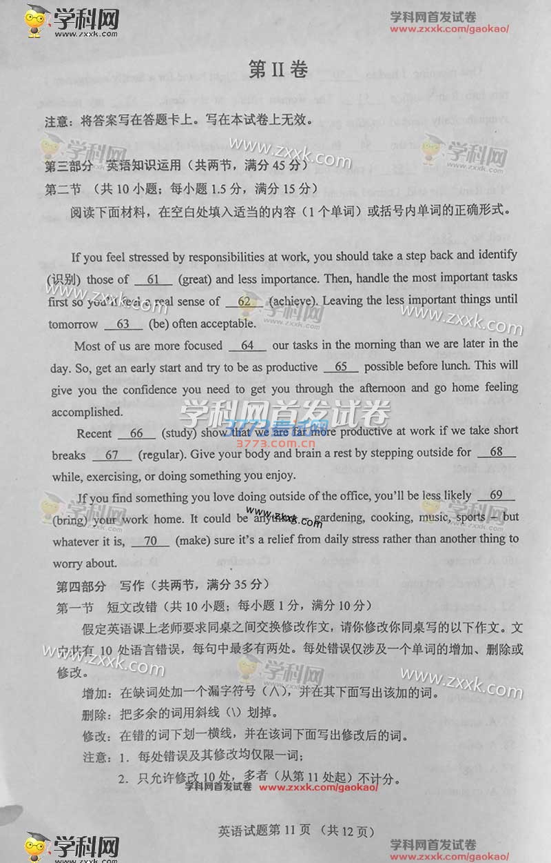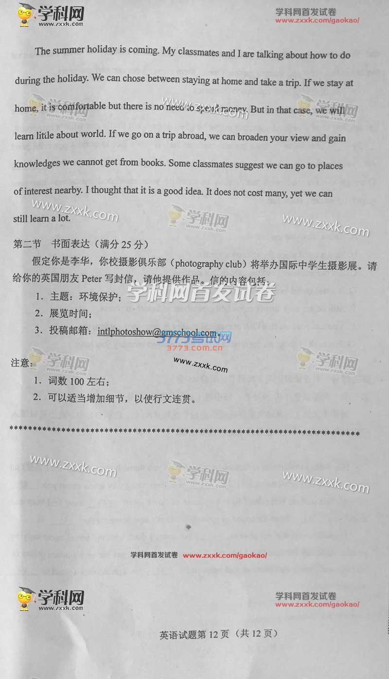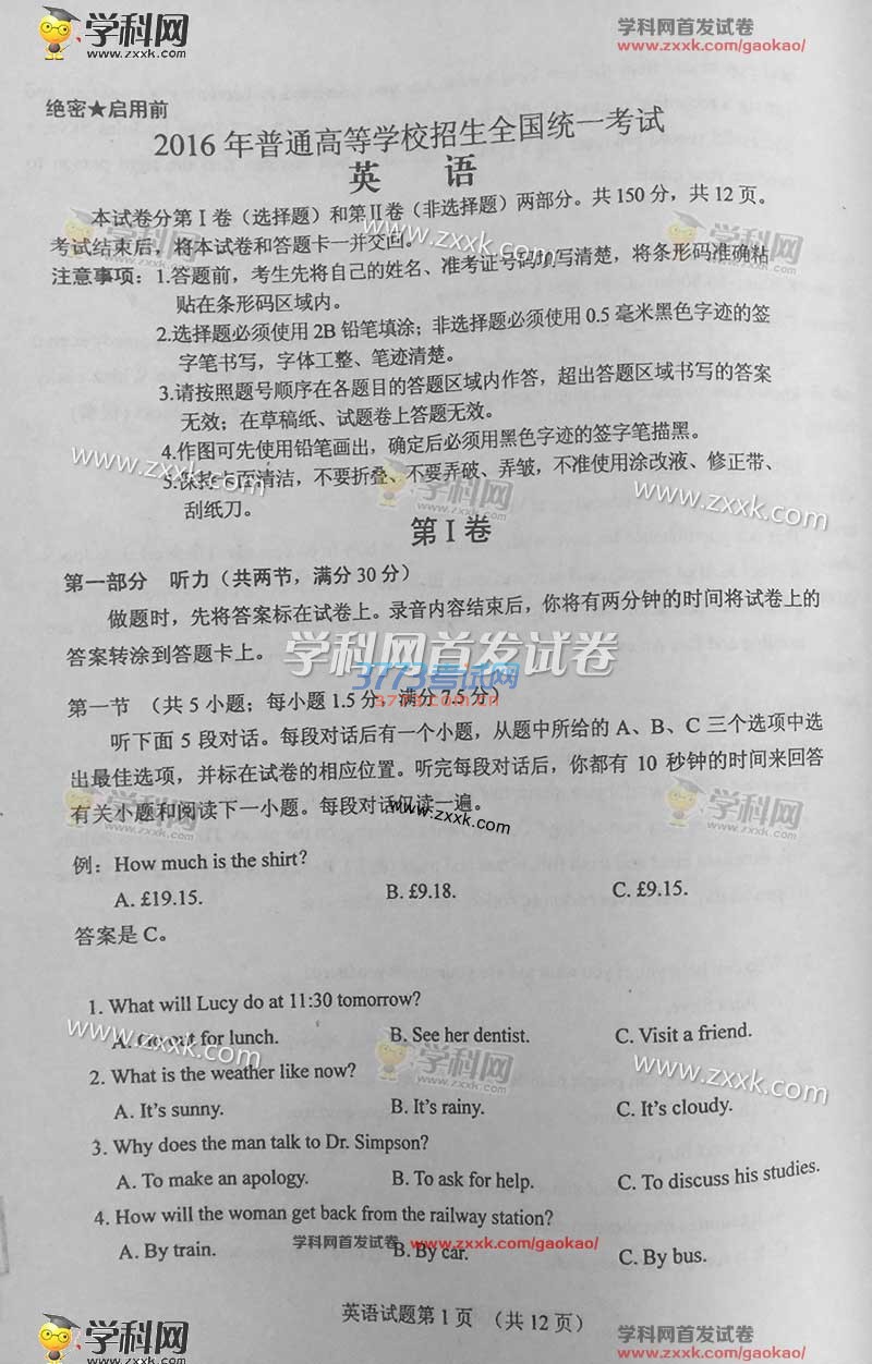 2016甘肃高考英语试题及答案发布