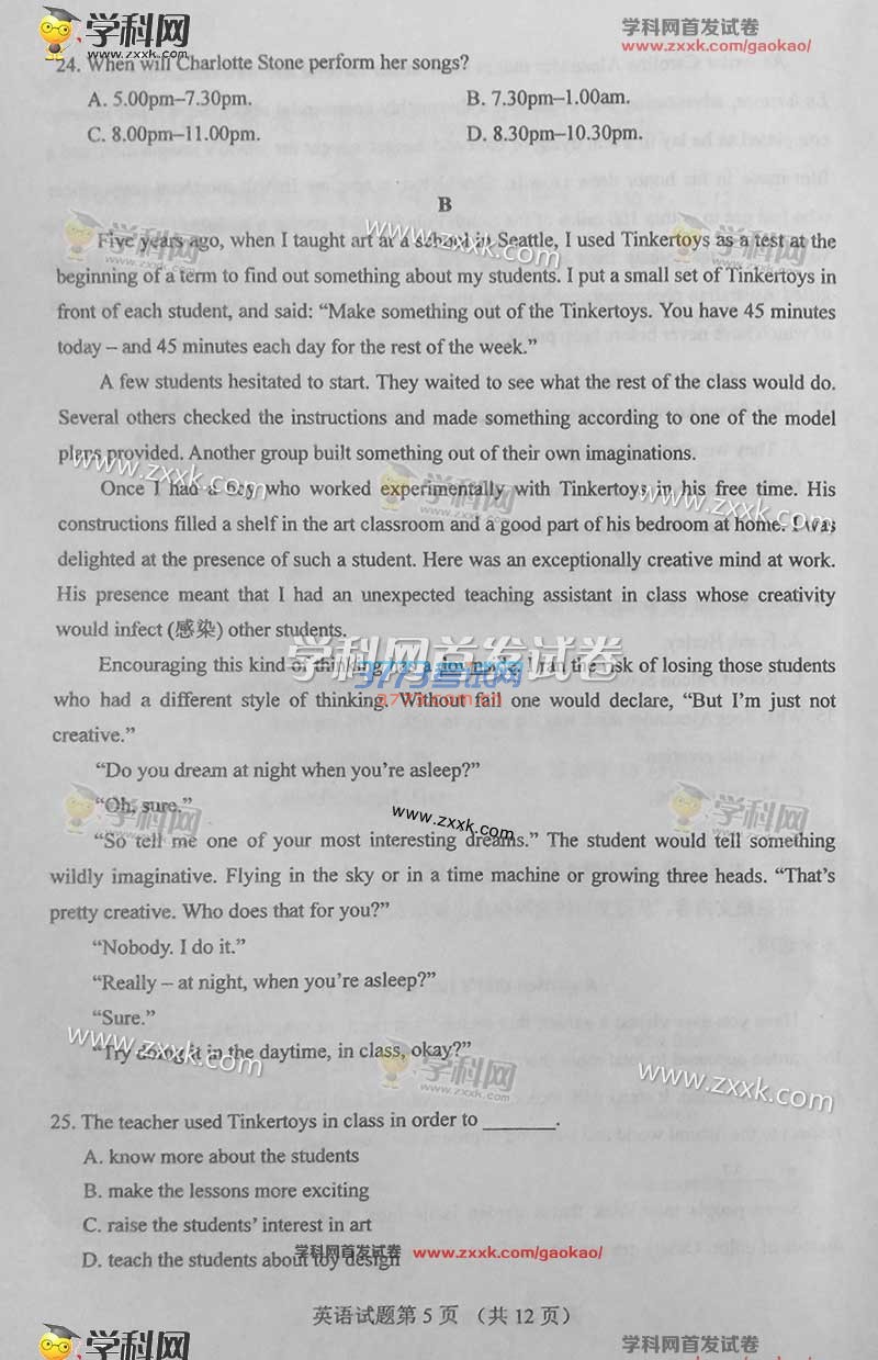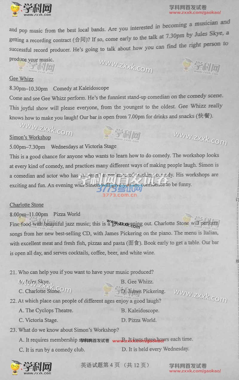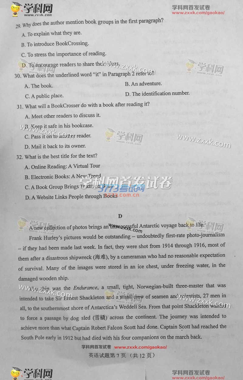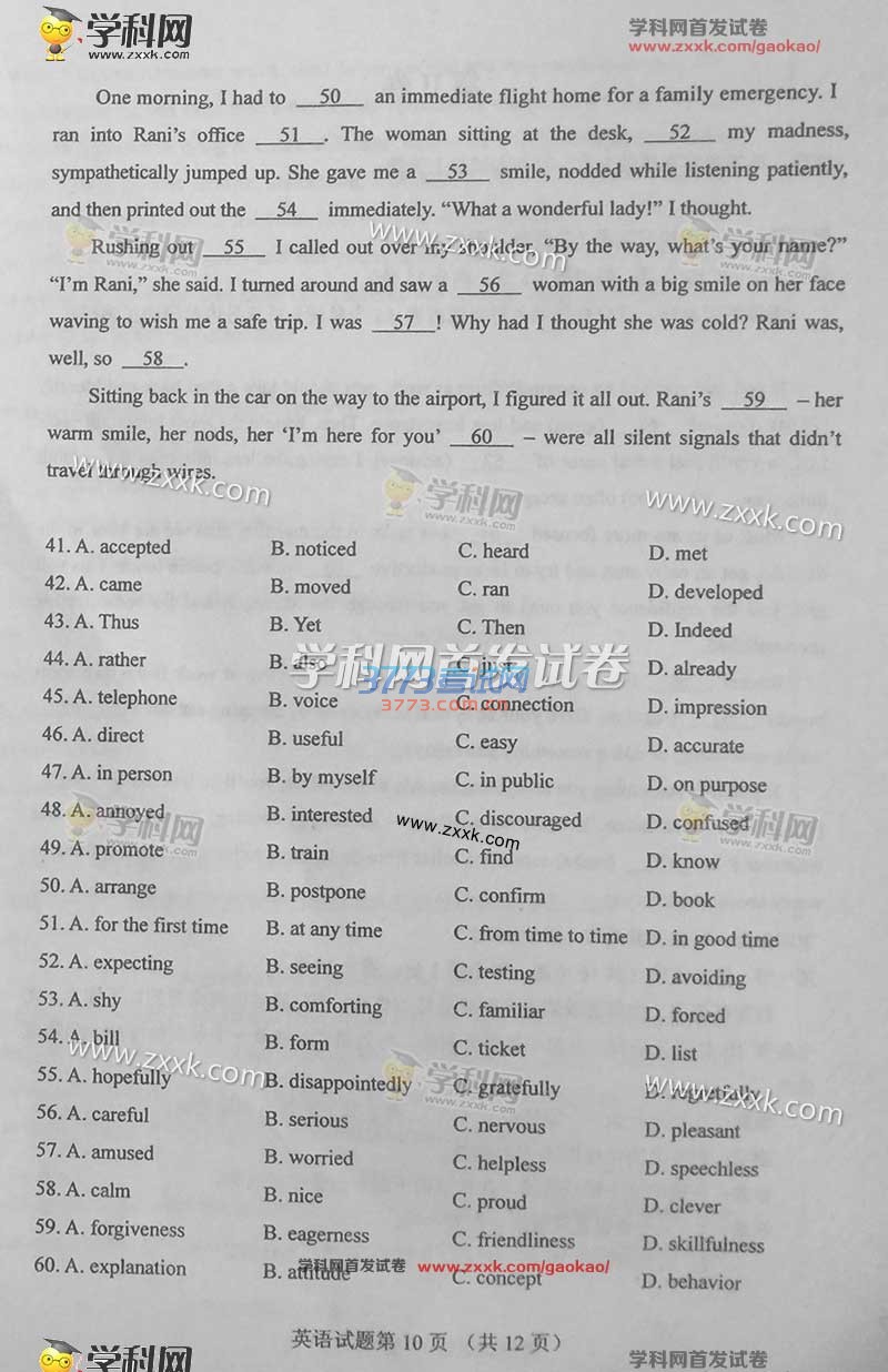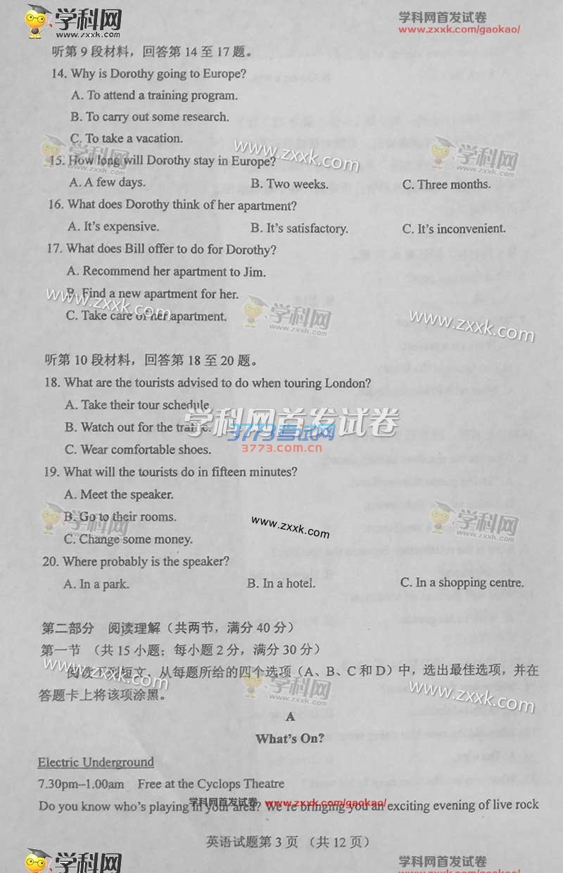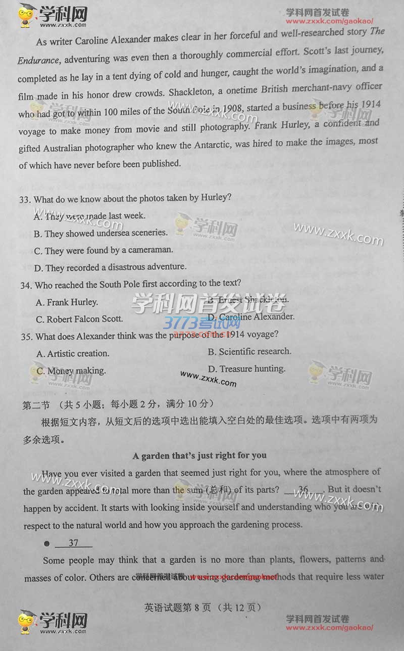 2016甘肃高考英语试题及答案发布