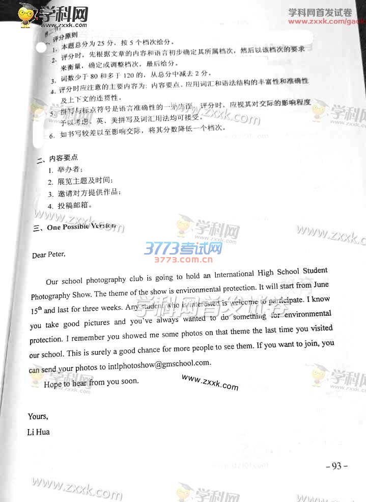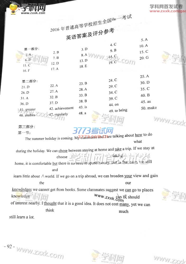 2016年新课标2英语高考试题及答案(图片)