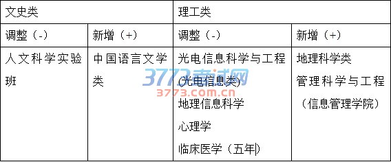 (1)提前批专业调整情况:仅有文史类3个专业(历史学基地班、哲学基地班、日语)。原提前批次理工类基地班全部转入本一批相关专业录取(数学类、物理学类、化学类、生物科学类、地理科学类)。生态学专业恢复招生,所属招生专业大类为生物科学类。