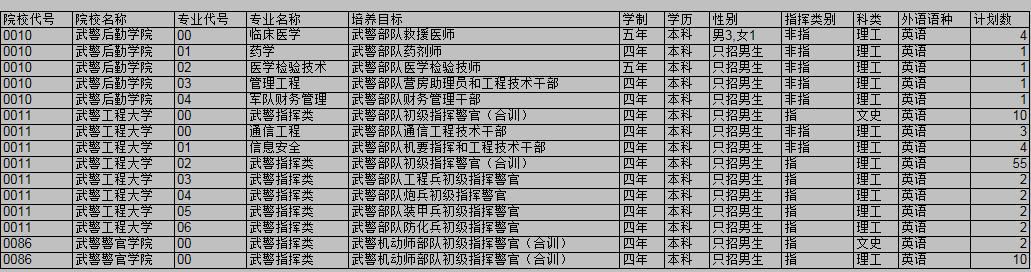 1.提前批本科A段增加3所武警院校招生计划100名,其中中国人民武装警察部队工程大学80名,中国人民武装警察部队警官学院12名,武警后勤学院8名。相关详细信息见附件1。