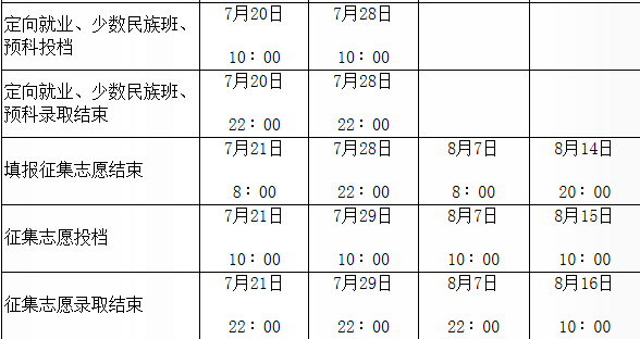 注:1.本科三批、高职(专科)填报志愿时间为:7月30日8∶00—8月1日22∶00。