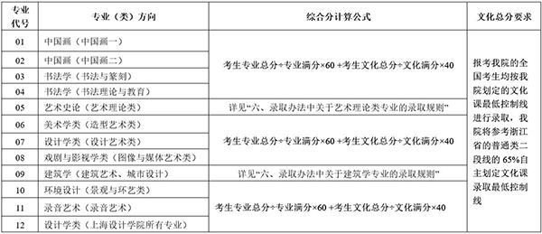 (2)艺术史论(艺术理论类)专业:专业合格,按高考文化课成绩总分排名从高分到低分顺序录取。