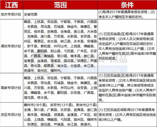 2017江西省高校专项计划实施范围及报名条件
