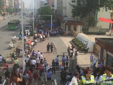 场内考生们已经开始了紧张的答题,场外很多送考家长不舍离去。考生们加油,家长们辛苦啦!(图:河南教育,河南法制报微博) ?