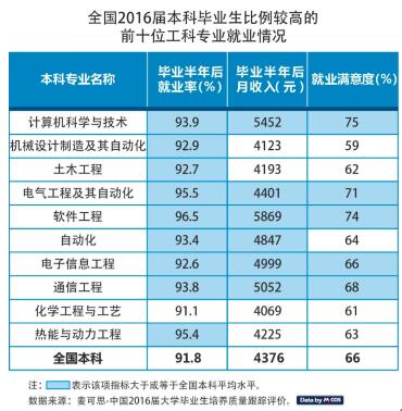 十大热门工科专业就业率普遍高于全国本科平均