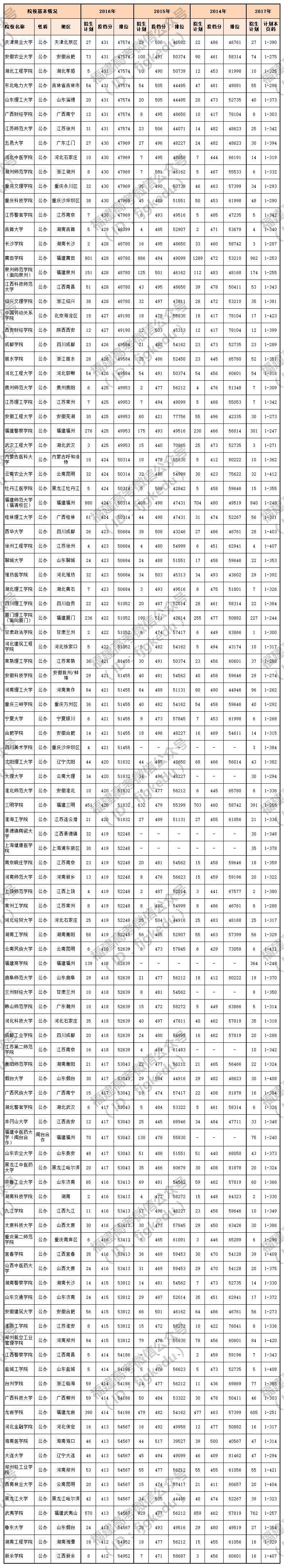 本二线上60-79分的公办院校在闽招生录取分析(理科)