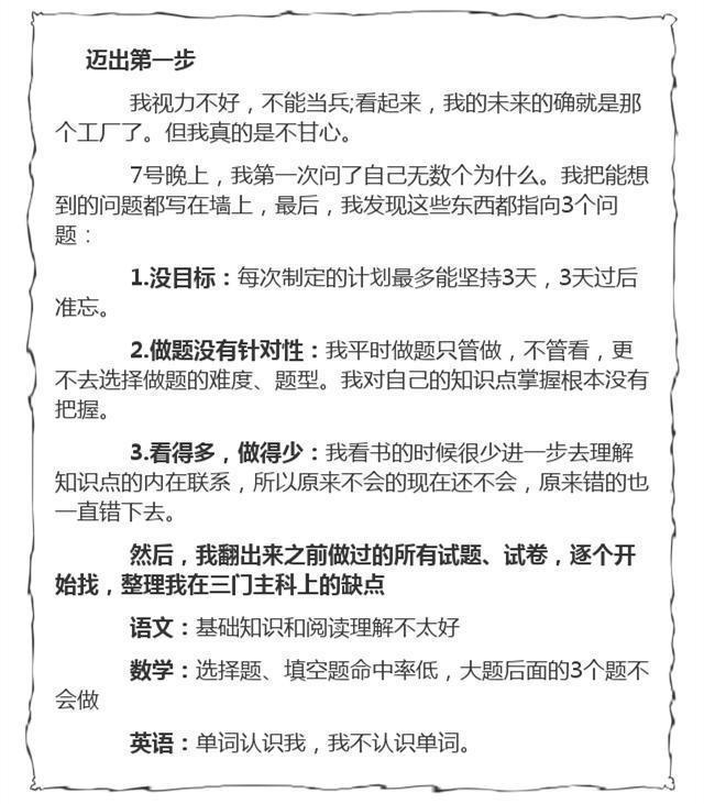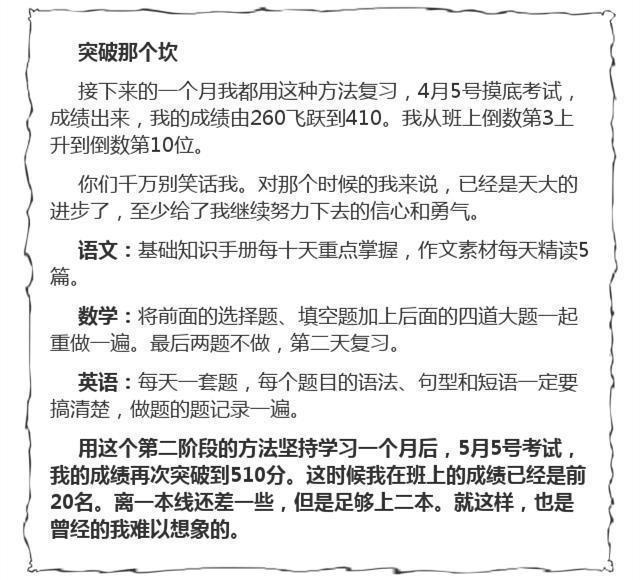 总结:只要你想学,什么时候都不晚,报着能提升一分是一分的心态,积极面对,持之以恒,筑梦高考!