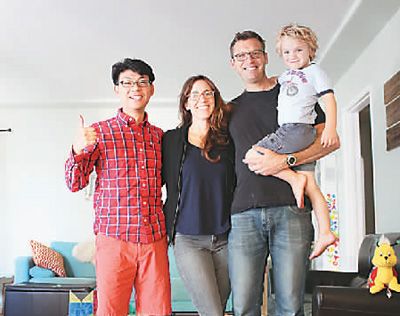 去年暑假黄宇峰(左一)前往美国游学,在游学结束后,同所住的寄宿家庭合影。