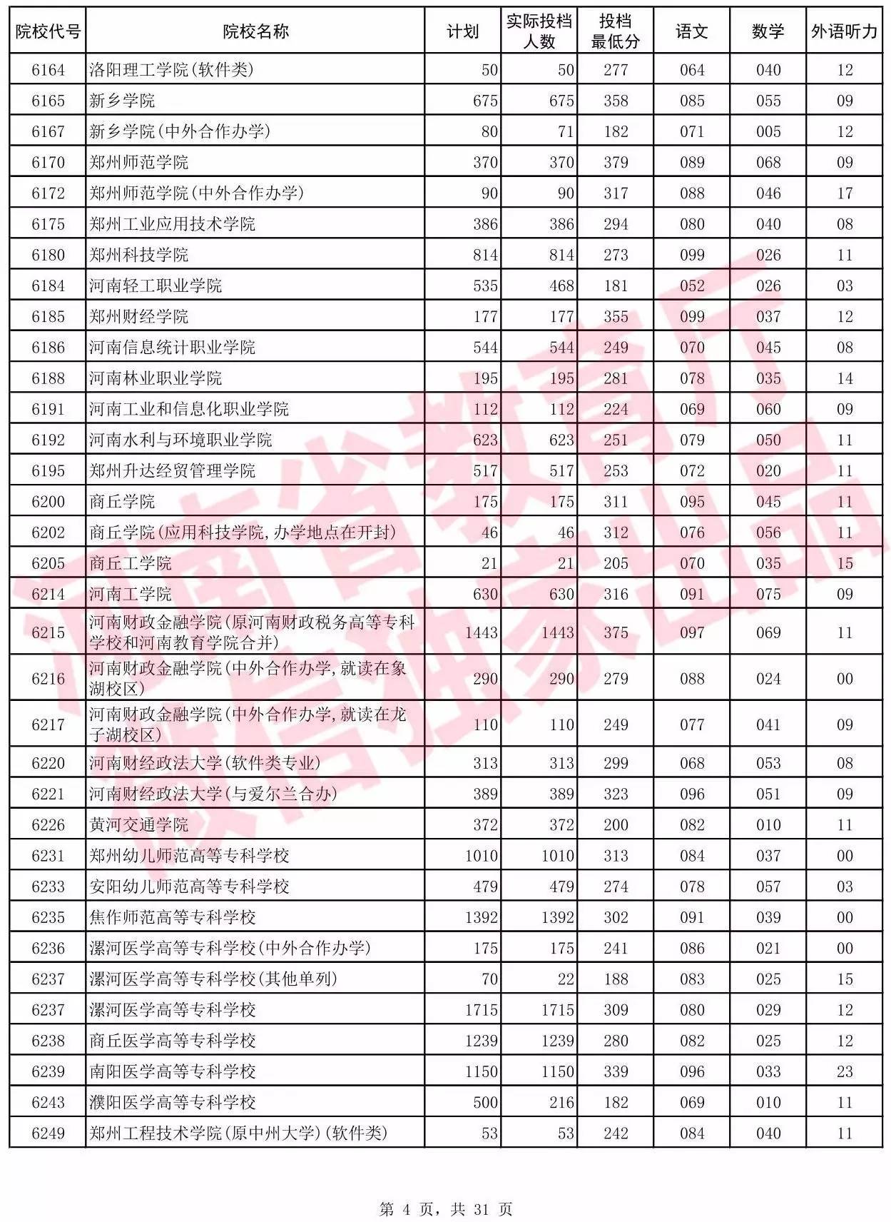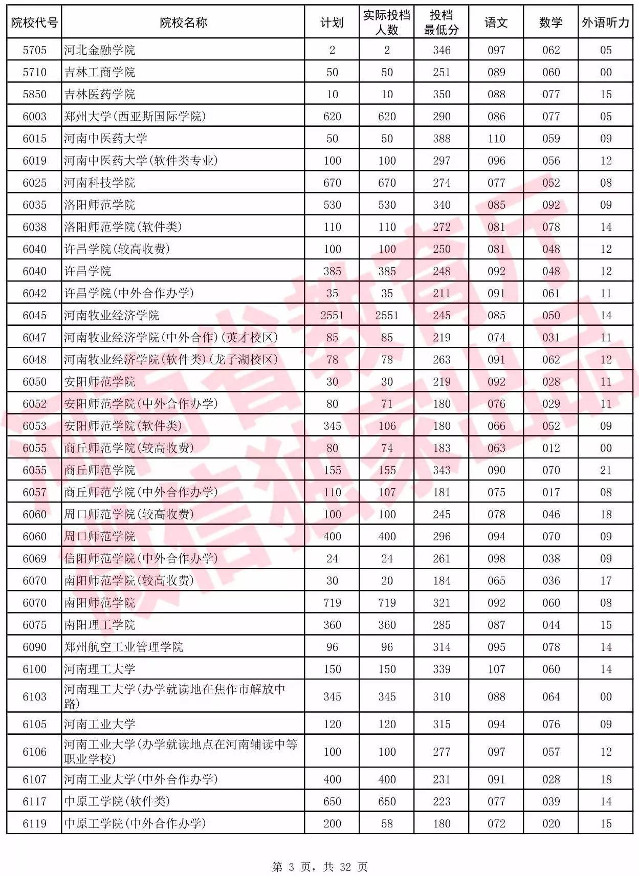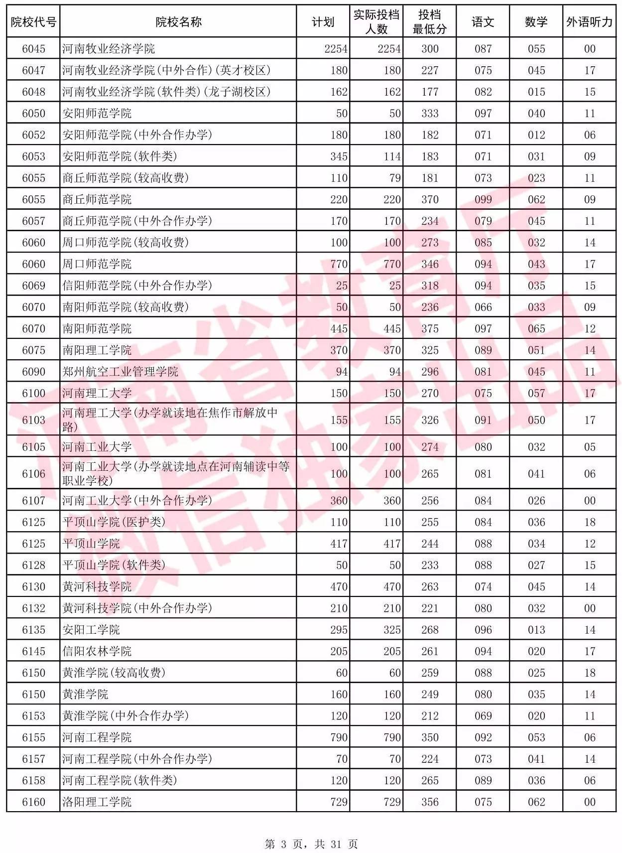 2017年河南省普通高校招生