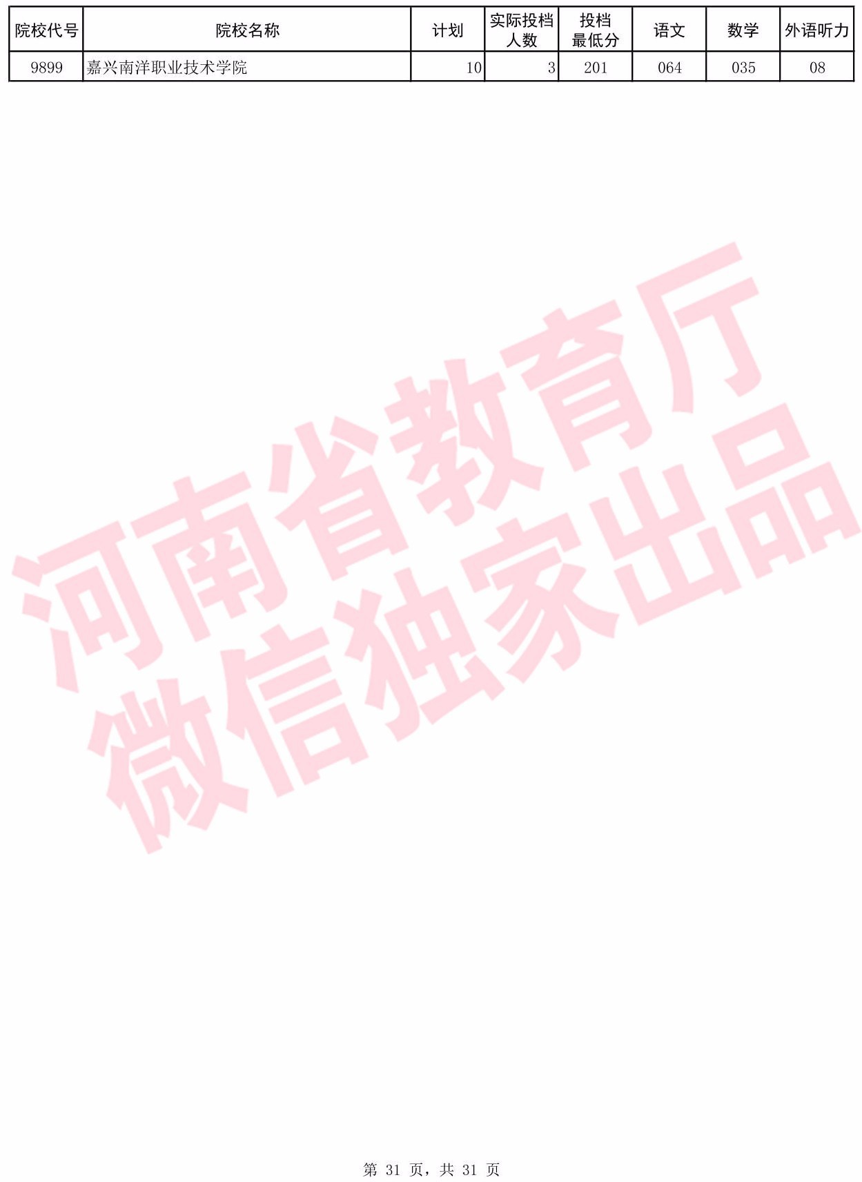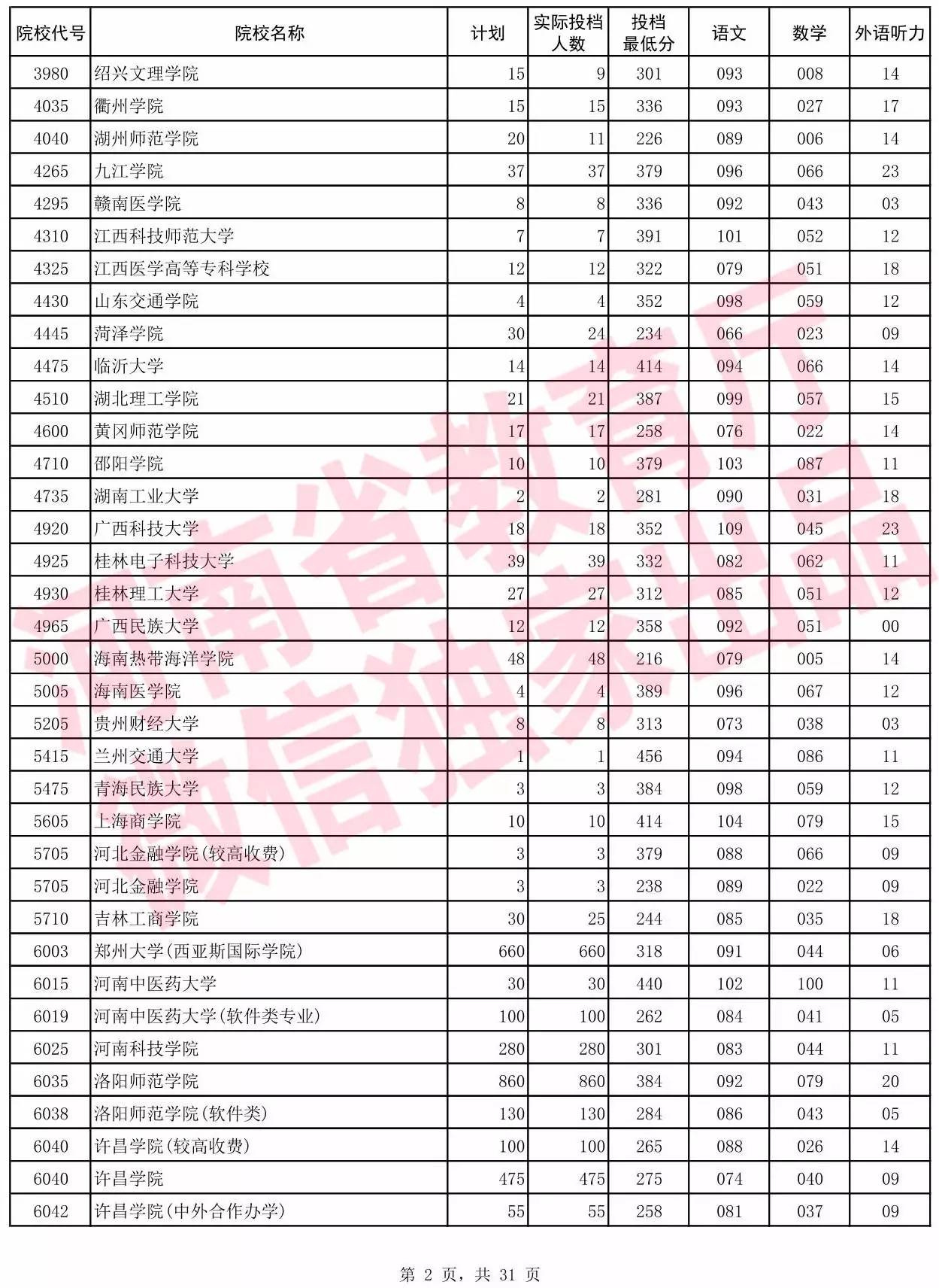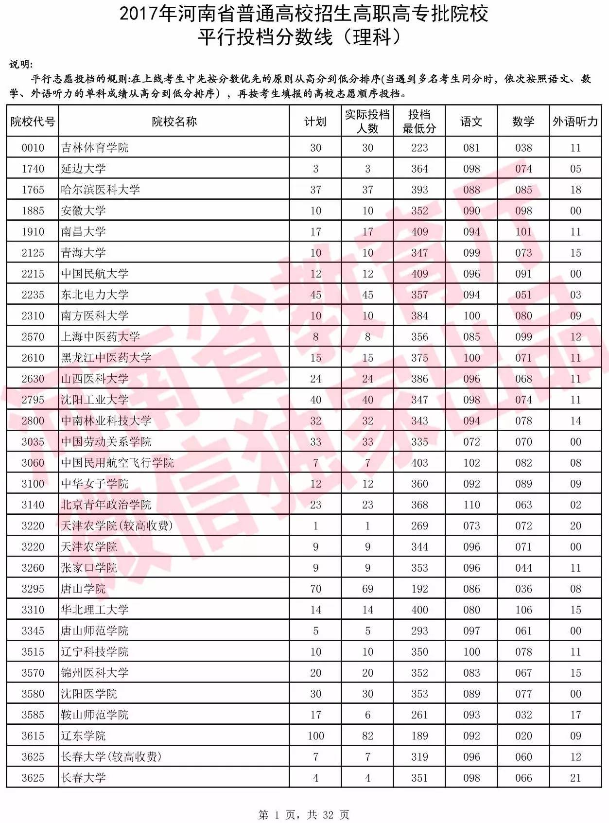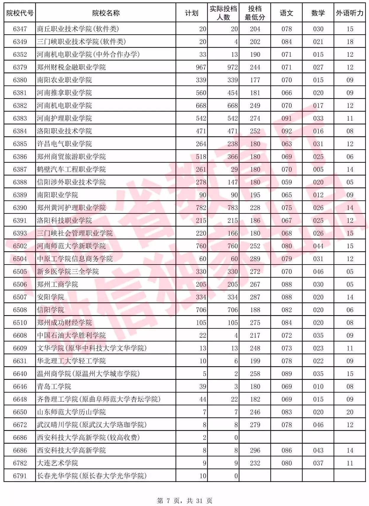 2017年河南省普通高校招生