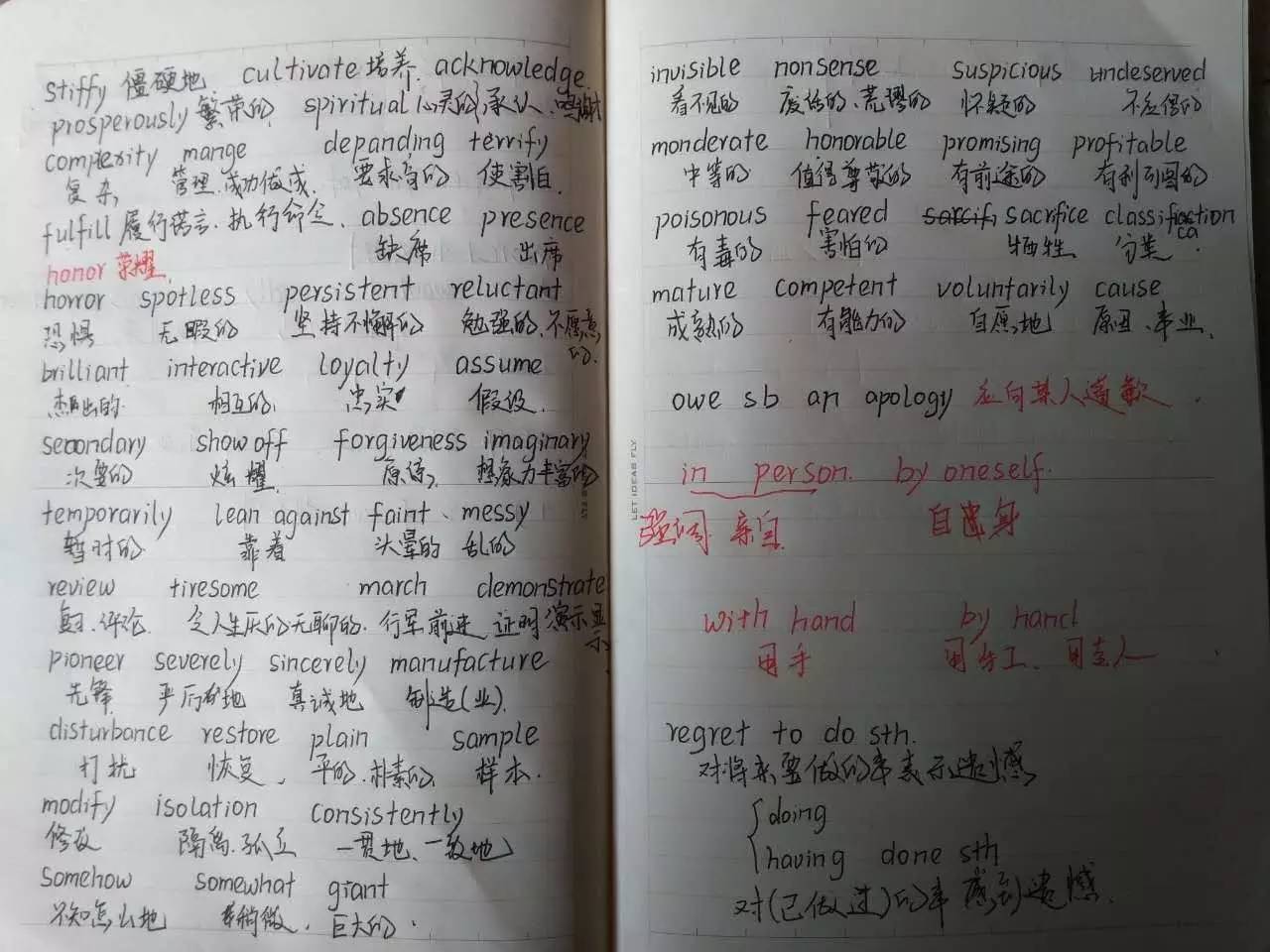 如果条件允许,高三生可用一个便于携带的小本子记录词汇笔记,在回家的路上、上课的间隙等课余时间勤于翻看。此外,还可将背单词当作娱乐休闲,几个同学比赛谁找出的好词组好句子多,在讨论中对高频词汇的印象会更加深刻。