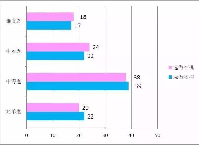 与2016高考理综化学试卷相比,考生做题容易上手,中间略有挣扎,整体难度基本持平,略有上调。在选做部分,【物构】和【有机】两道选考题,整体难度略有差异,不过差异幅度收窄,体现的考试的公平性。