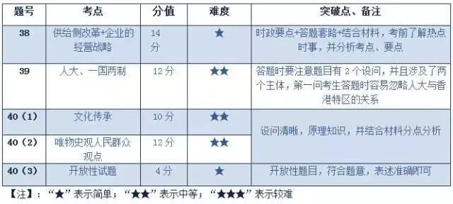 综上,整体试卷难度不大。准高三学生在接下来的学习过程中,不仅要关注自身学习,也要胸怀国家社会发展,把自己培养成一个综合型人才。