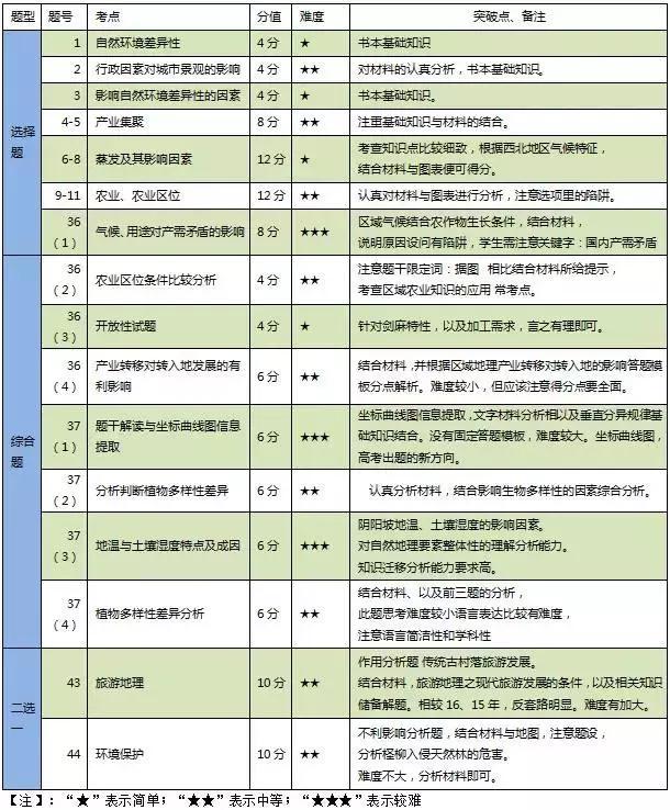 今年考试题型结构和内容均有变革,但均为考纲要求考点,更加注重基础知识的联系以及各个模块间的综合应用,更注重学生综合素质的培养,强调学科间的互相渗透应用。