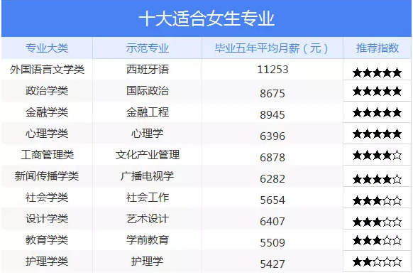 等到高考后再挑选大学专业稍微有点迟了,早作打算才是精明之举。现在分享十大适合女生的专业,希望可以帮到同学们。注意,以下数据仅供参考,具体的报考和选择专业要根据自己的需求和标准!