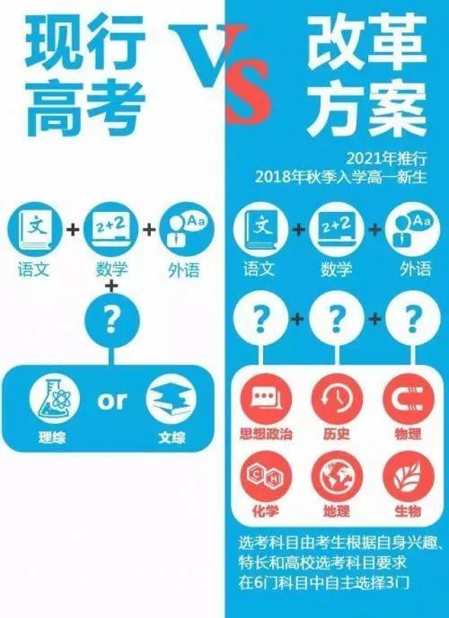 据帮主了解,江苏新高考改革方案出炉选考科目“六选三”2018年开始启用。而从2017年起,上海将采取“3+3”高考模式,即由语、数、外3门统考,加上学生自选的3门学业等级考组成最终高考成绩。北京是从2020年高考实行“3+3”模式。