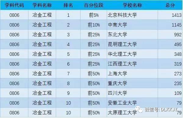 北科、中南是我国冶金学科的“双壁”,本次北京科技大学暂列第一。