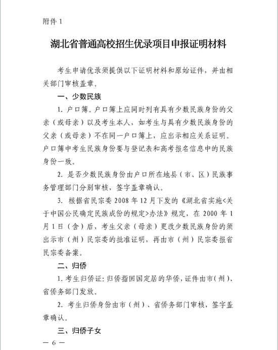 1。湖北省普通高校招生优录项目申报证明材料