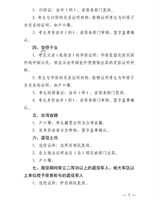 2。归侨、华侨子女、归侨子女和台湾省籍考生。