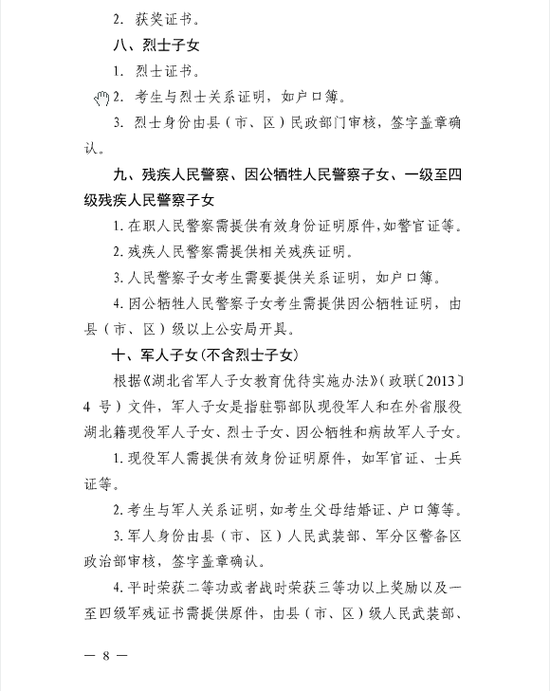 1。少数民族聚居地的少数民族考生。少数民族聚居地指恩施土家族苗族自治州下辖的恩施市、利川市、建始县、巴东县、宣恩县、咸丰县、来凤县、鹤峰县,以及宜昌市的长阳土家族自治县和五峰土家族自治县等10个县(市)。