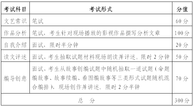 (4)考试:每组考生只设一个面试考场,包括自我介绍、读文评述与编导创意三个科目。读文评述与编导创意为现场抽取试题。