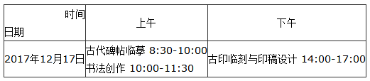 考试科目为古代碑帖临摹、书法创作、古印临刻与印稿设计三科,每科满分均为100分。