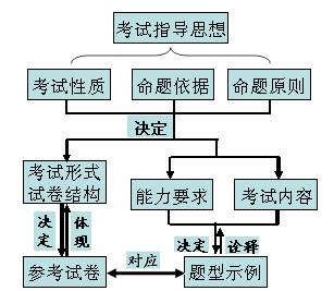 《考试大纲》所规定的多项内容是一个紧密相关的整体(如右图),而试题是《考试大纲》中命题指导思想、考查内容要求与试题呈现方式三个方面的深度诠释、外在表现。研究《考试大纲》应建立起“考试指导思想”“考查内容要求”“试卷形式结构”等关系的研究思路,准确把握命题立意、考查目标与考查形式的内在一致性,在剖析考试内容时,注意比较《考试大纲》与《考试说明》的异同点,着眼于差异的本质,做到“知其然”并“知其所以然”,从而为复习教学的决策与实施提供良好导向。在对高考试题研究中,也不能仅仅关注试题的考点,应从试题的呈现方式入手认识考查的知识内容、能力要求、命题依据和命题原则,从而达成不仅知道“考什么”“怎么考”,还清晰认识到“为何这样考”的研究目标。这是指导并培养学生“答什么、怎么答、为何这样答”的解题方略的前提与基础。