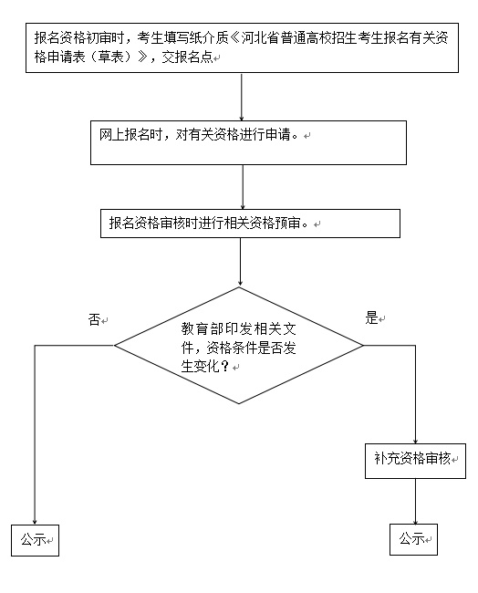 申请优惠加分和优先录取的考生在报名资格初审时如实填写《河北省普通高校招生考生报名有关资格申请表(草表)》交报名点,并在网上报名时进行申请。因填写不实或填写错误所造成的问题,责任由考生自负。考生须按照有关要求提交相关申请,逾期不提交的不再予以审核。符合农村独生子女照顾政策的考生和军人子女优待条件的考生的申报程序按报名文件有关规定执行。