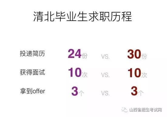 看来清北学生在求职时并不是无往不胜,也需要广投简历,并且拿到offer的比例并不高,当然,这跟清北学生的选择都是国内最好的企业有直接关系。