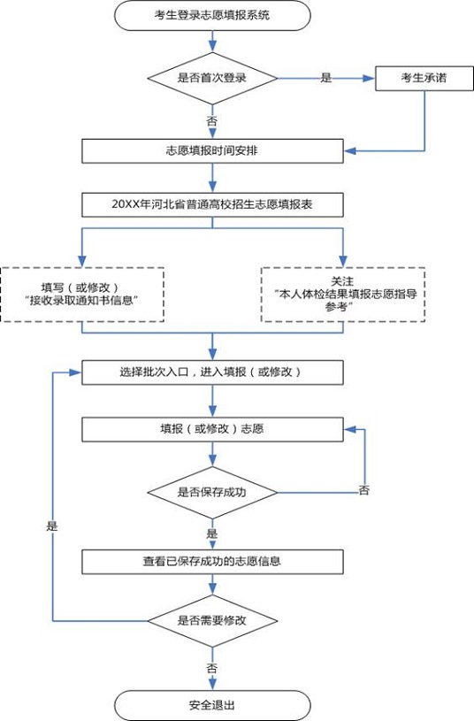 考生须使用IE8及以上版本浏览器(不支持手机等移动设备),在规定时间内,通过计算机网络访问“河北省教育考试院”网站http://www.hebeea.edu.cn或直接访问https://gk.hebeea.edu.cn,登录2019年河北省普通高校招生志愿填报系统。进入系统后,考生应首先核对姓名等信息是否无误,再填报志愿。