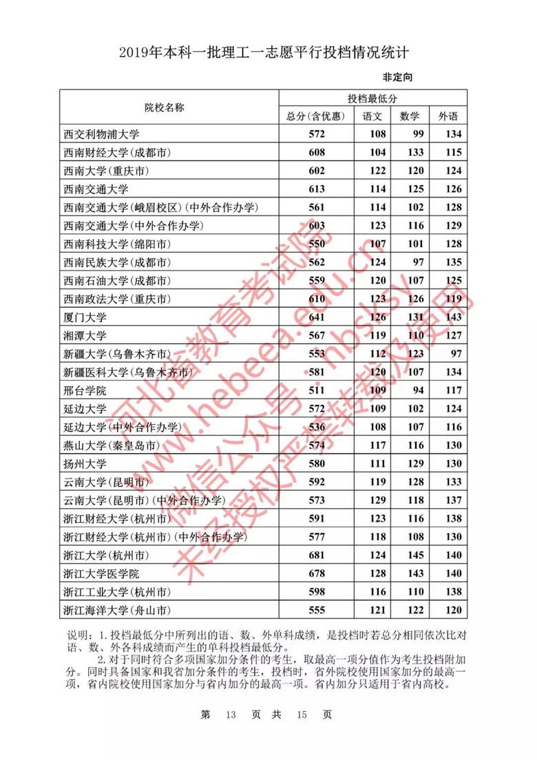 1.投档最低分中所列出的语、数、外单科成绩,是投档时若总分相同依次比对语、数、外各科成绩而产生的单科投档最低分。