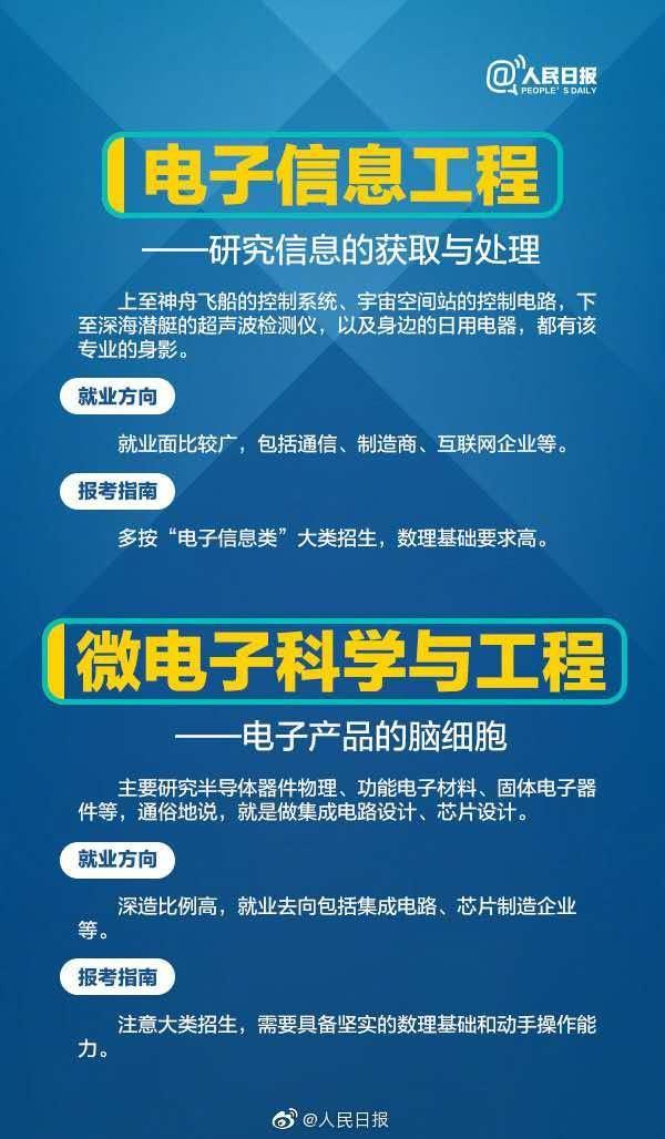 电子信息工程、航空航天类、微电子科学与工程、机器人工程、数据科学与大数据技术、船舶与海洋工程等专业,在学科上面涉及的非常的广泛。除了学习领域广泛之外,难度也偏高,但实际就业面是很广的,深造的比例也高,未来的发展形势很好。