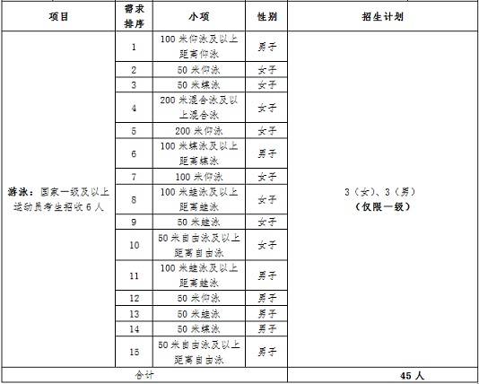 西安理工大学2020年高水平运动队招生计划不超过45名,招收田径、游泳项目运动员。