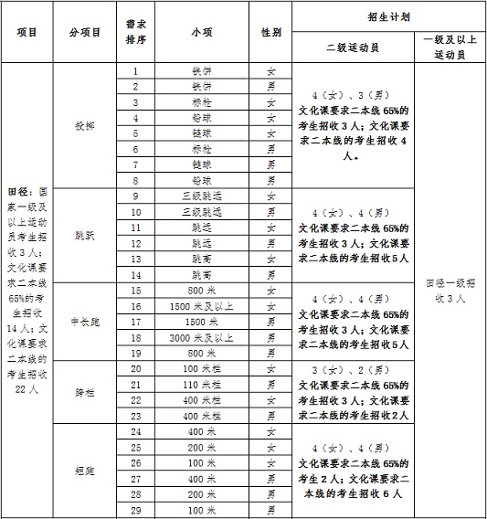 (3)一级运动员文化课考试与运动训练专业单独招生文化课考试统一组织,此类考生的文化课最低线由学校另行划定,且不低于运动训练专业统一划定的文化课最低线。