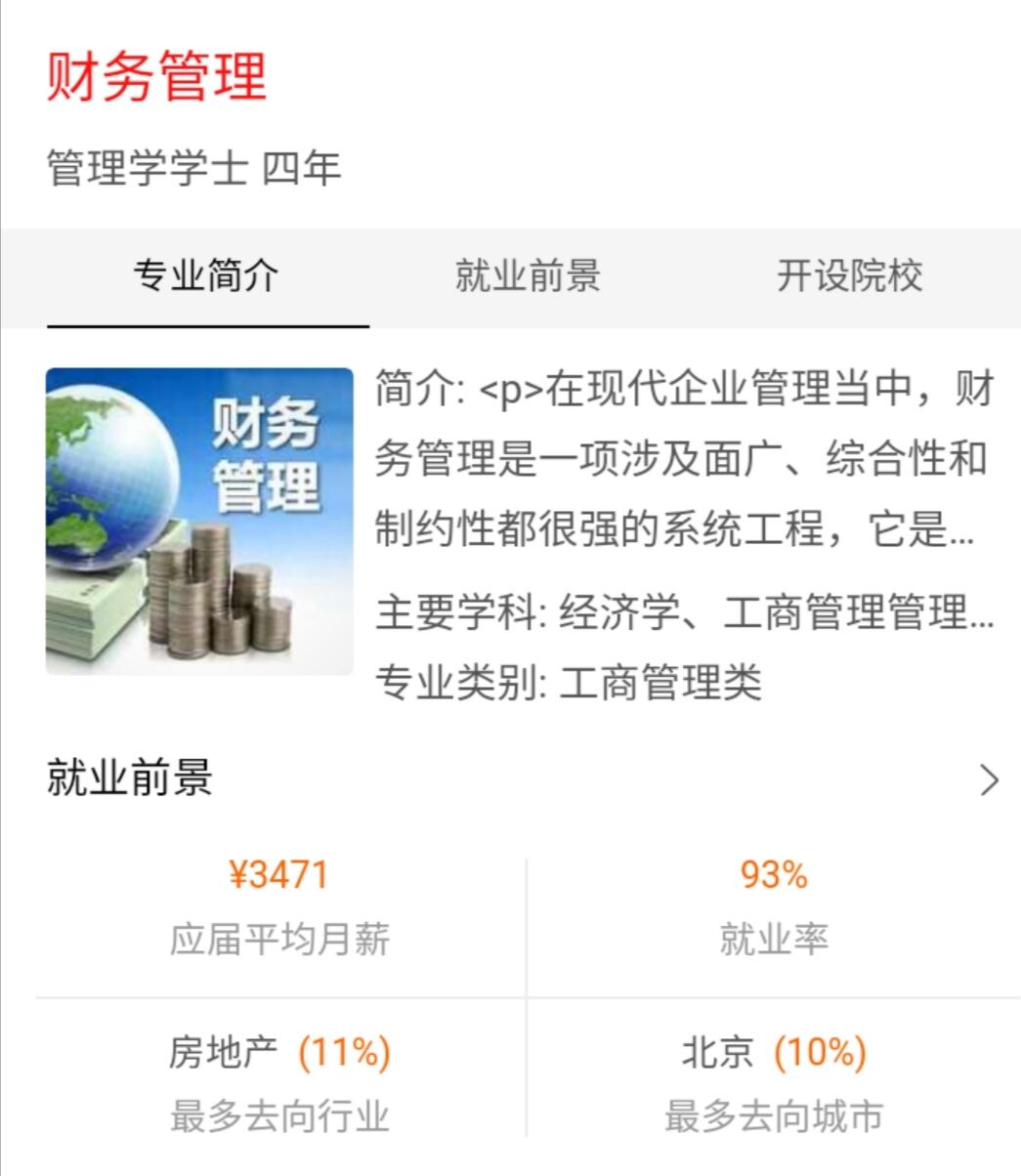 财务管理专业的开设院校有北京大学武汉大学复旦大学浙江大学等。根据相关资料显示,房地产行业为最多去向行业,最多去向城市是北京,应届平均月薪也较高,就业率高达93%。最重要的是,该专业文理兼招。