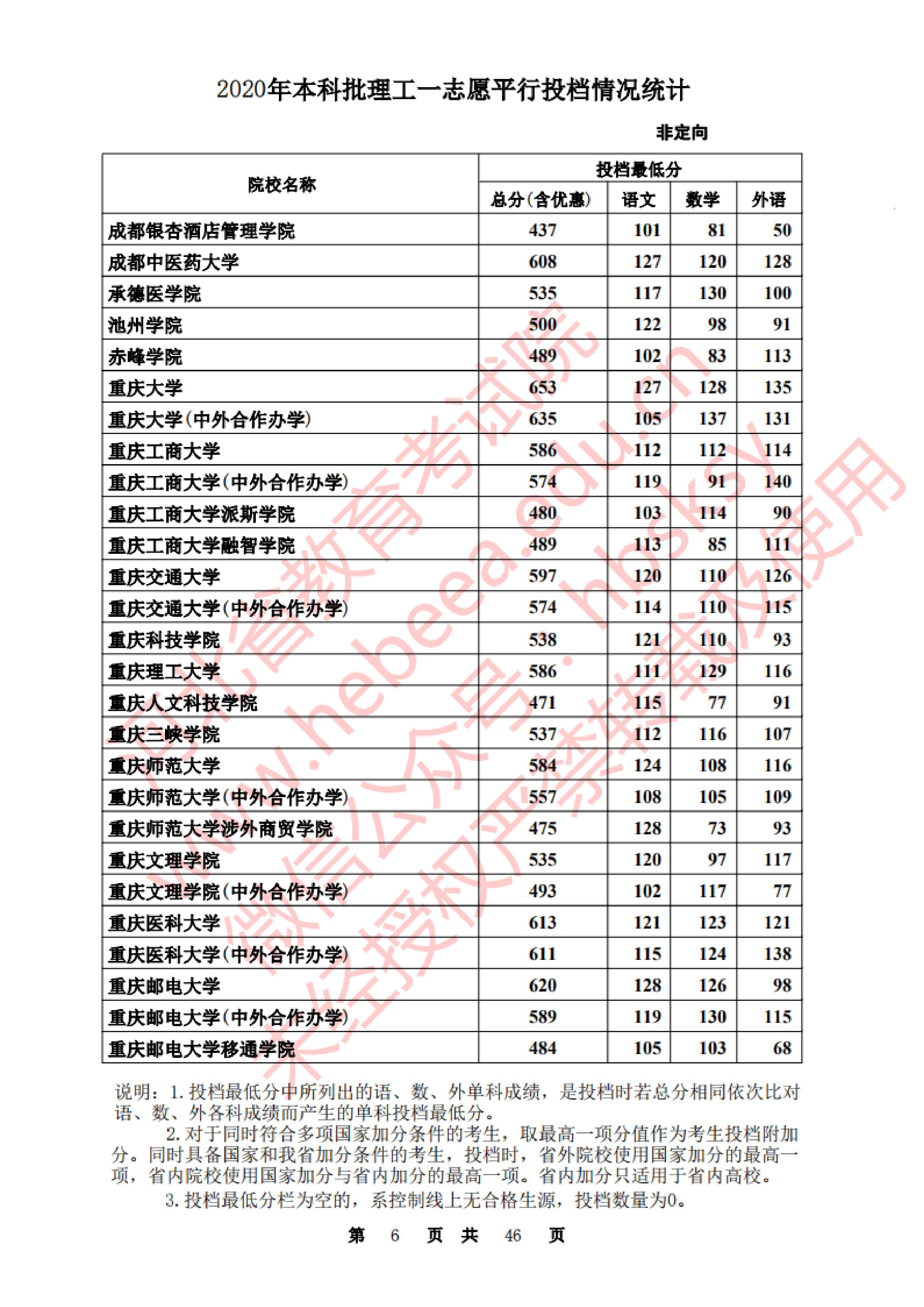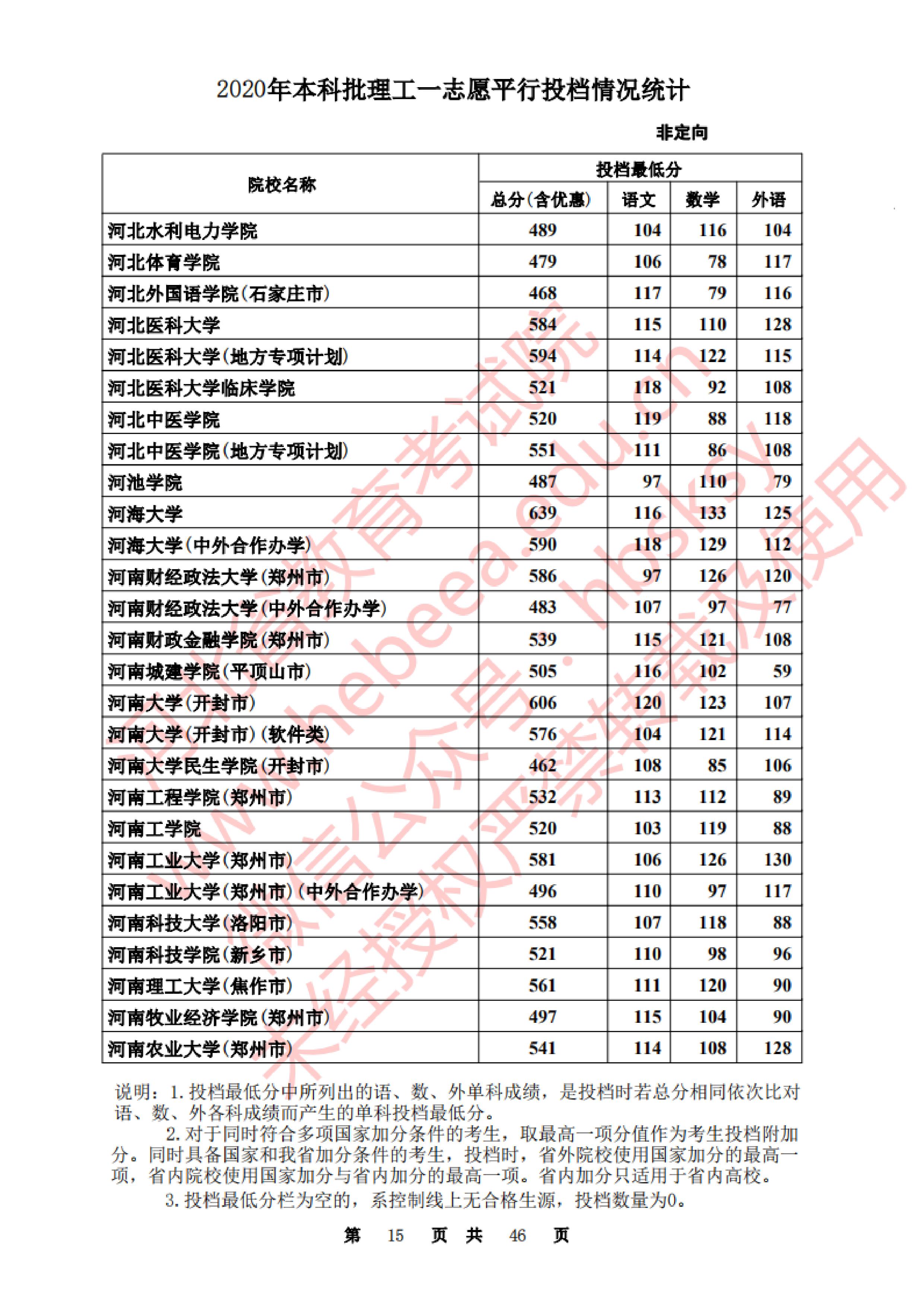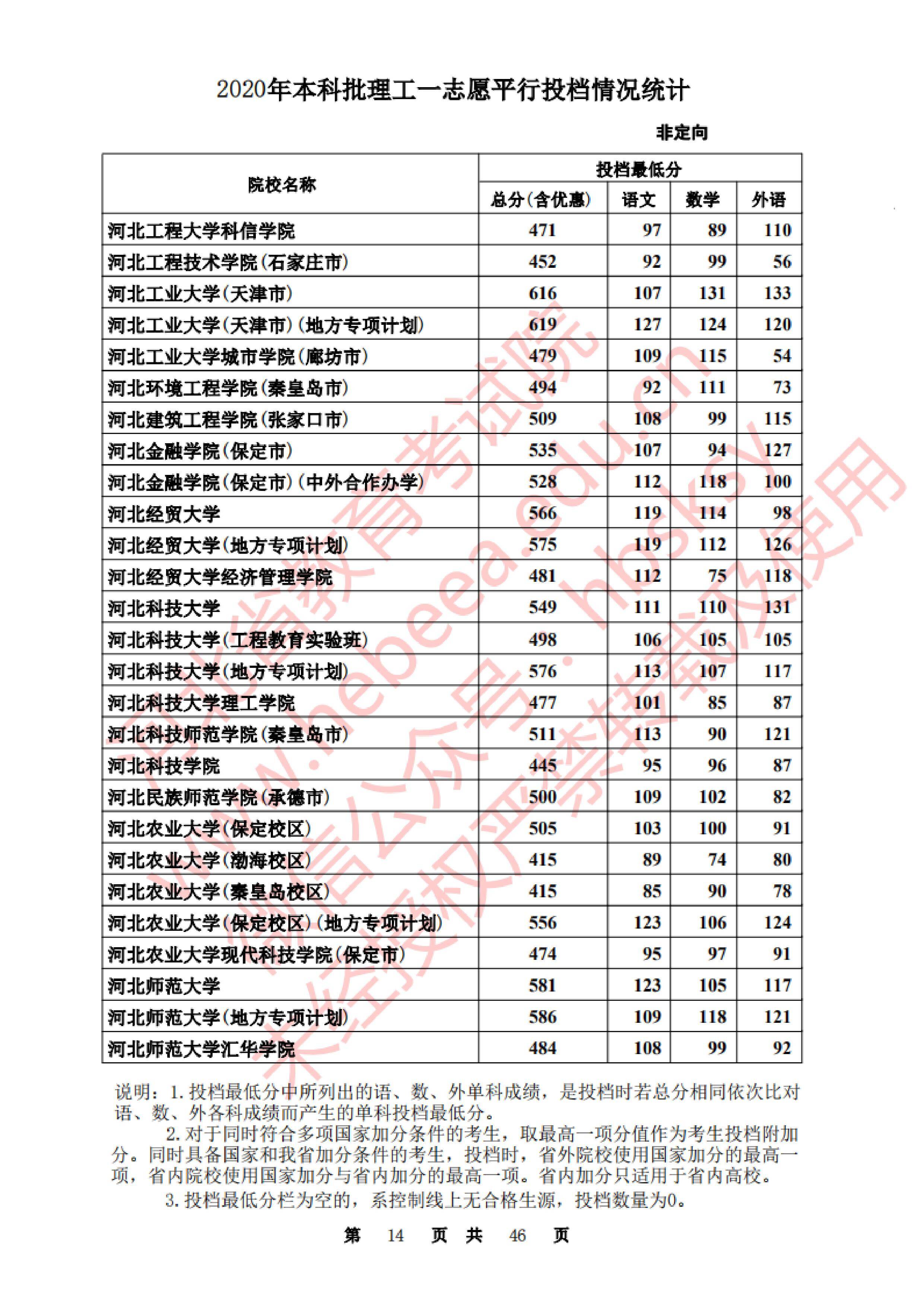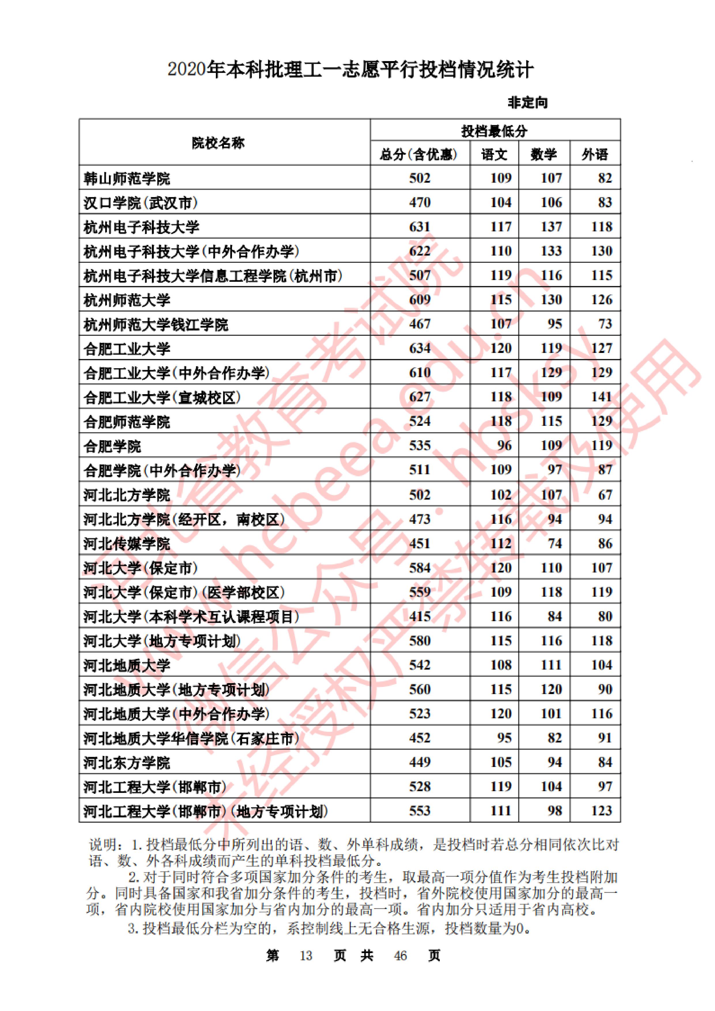 近日,河北教育招生考试院公布了2020年本科批一志愿平行投档情况统计,具体内容如下: